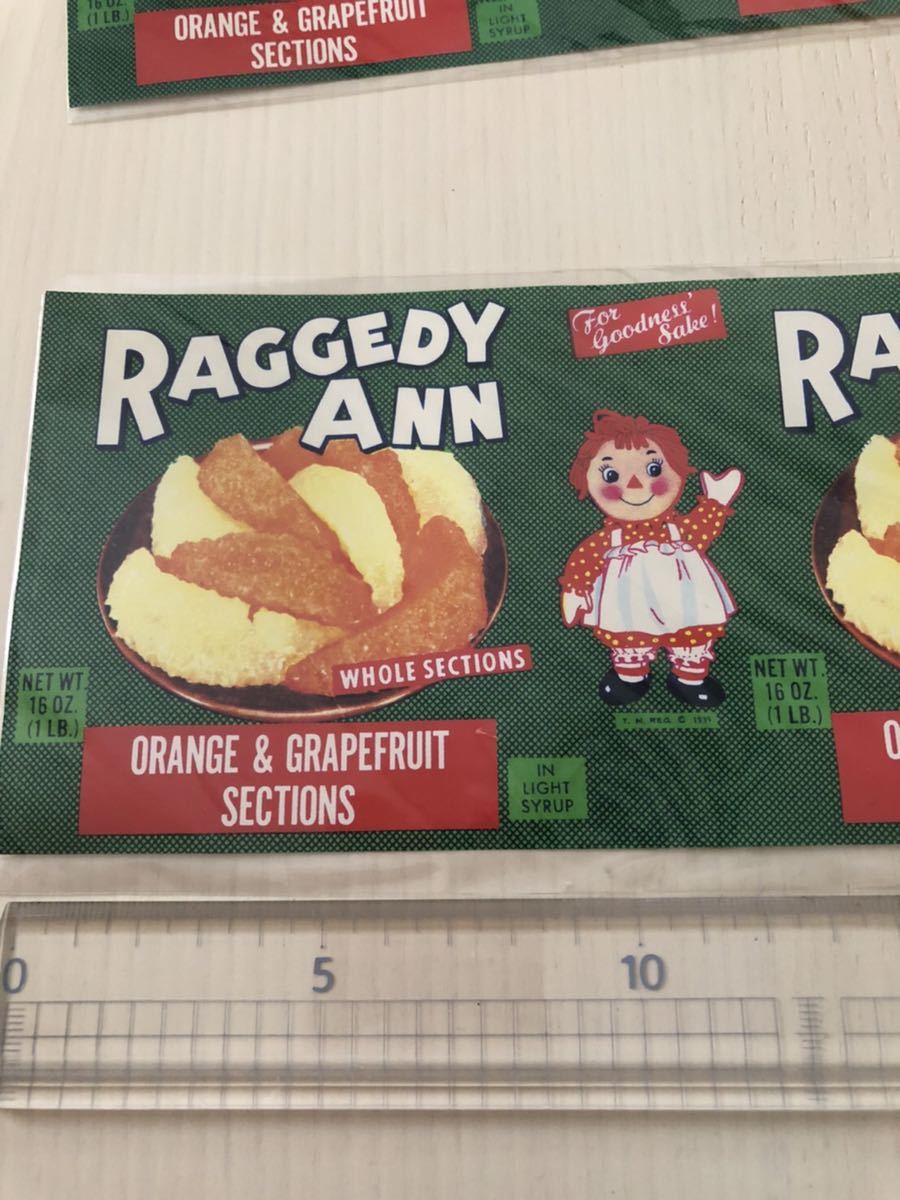 1998年頃にアメリカで購入したラガディ アンの缶詰ラベルです。