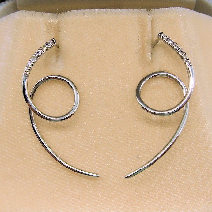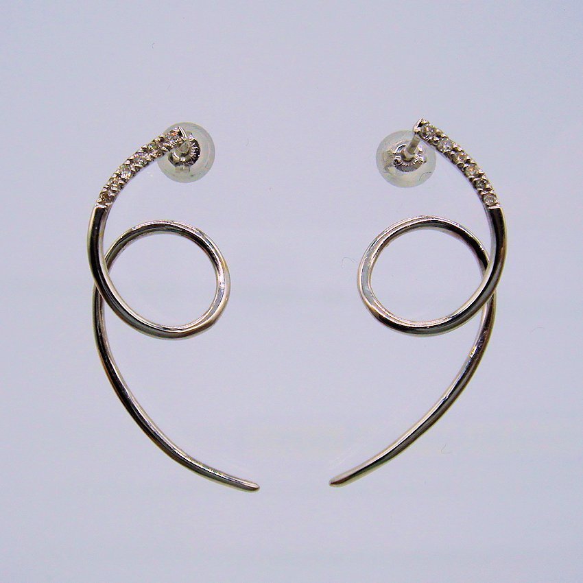 ダイヤをアクセントに使った大振りのデザインピアス。