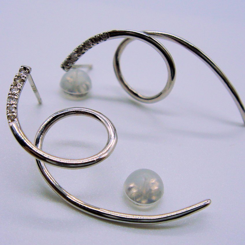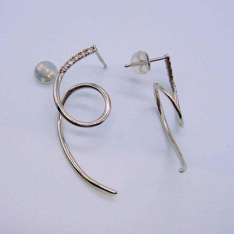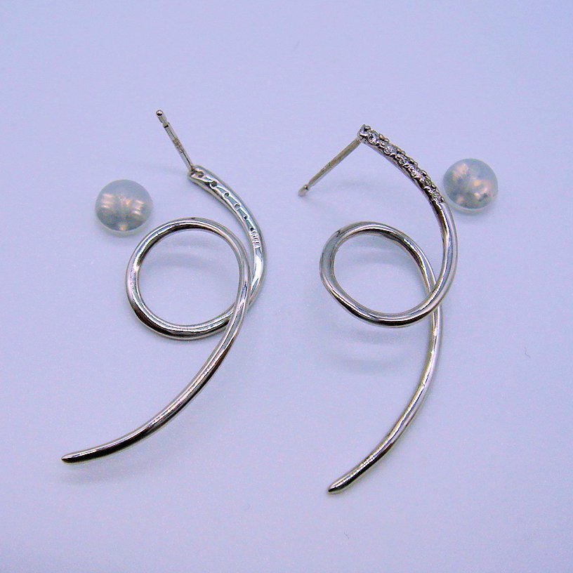ピアスホールの位置によっては、ピアスの一部が耳たぶの後ろに隠れ、また現れる感じで、独創的に着ける事が可能です。