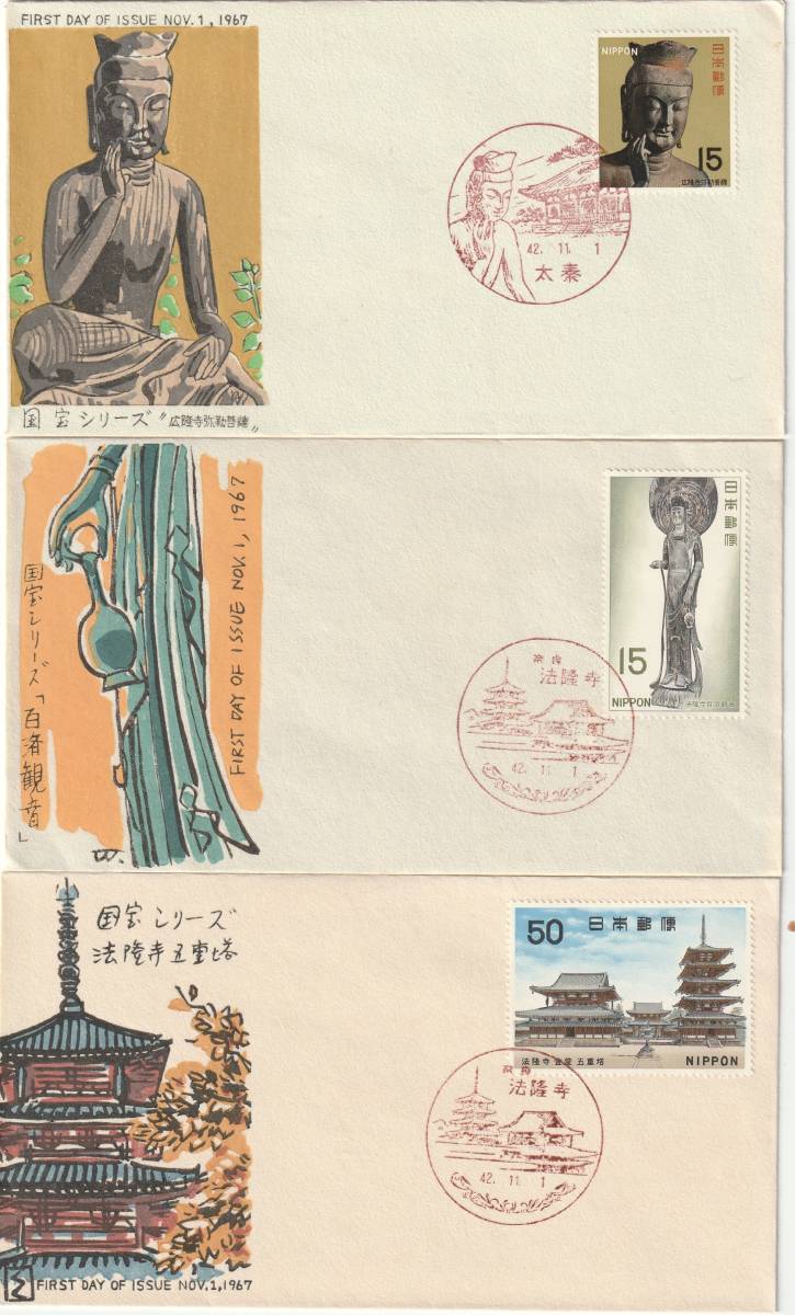 FDC 1967年 第1次国宝シリーズ 第1集  3種A  松屋