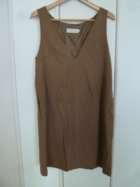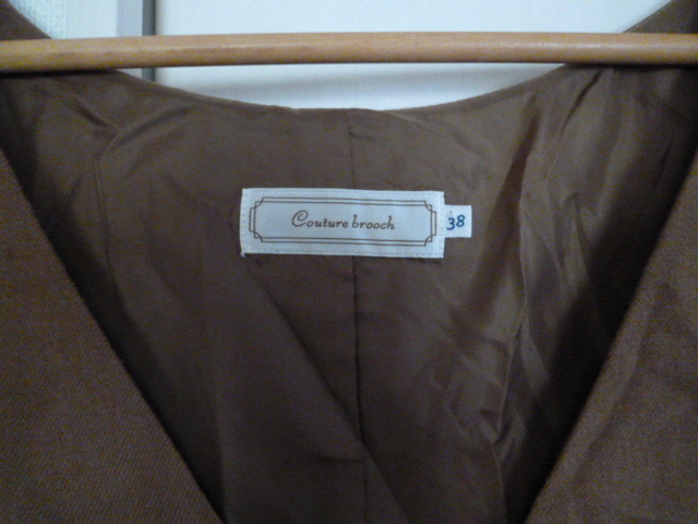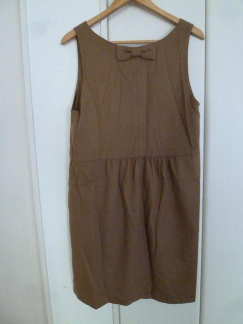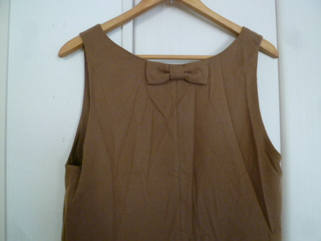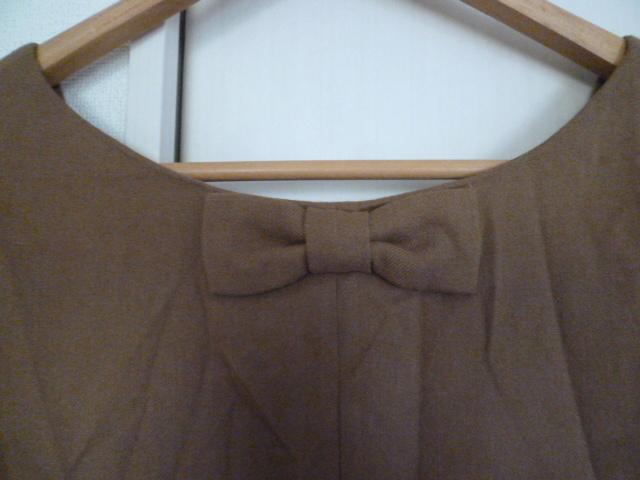 Couture brooch/クチュールブローチ○茶ベージュ系背中リボンワンピース38/ワールド膝丈ブラウン○OP123②