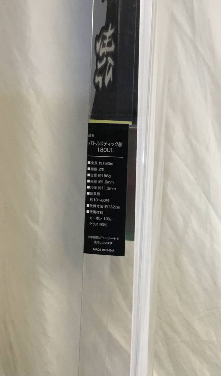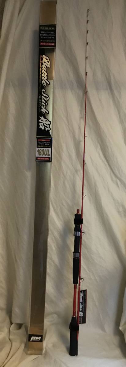 プロマリン(浜田商会)製の新品船竿バトルスティック船180ULです。7:3~6:4調子のムーチングタイプです。全長1.8m、並継2本、自重186g、重り負荷10~60号、仕舞い132センチです。やや胴に乗るムーチングタイプ、LTに最適なロッドです。カーボン含有です。LTにも使用可能です。アジ、イシモチ、カサゴ、イサキ、ヒラメ、タチウオ等に使用できます。高気密タイプガイドですので、PEにも対応です。使用用途が広く、使い勝手の良い竿です。送料込み決算値下げ品です。即決6800 円です。ヤフネコ160サイズのお手軽宅急便の配送です。スピード発送します。