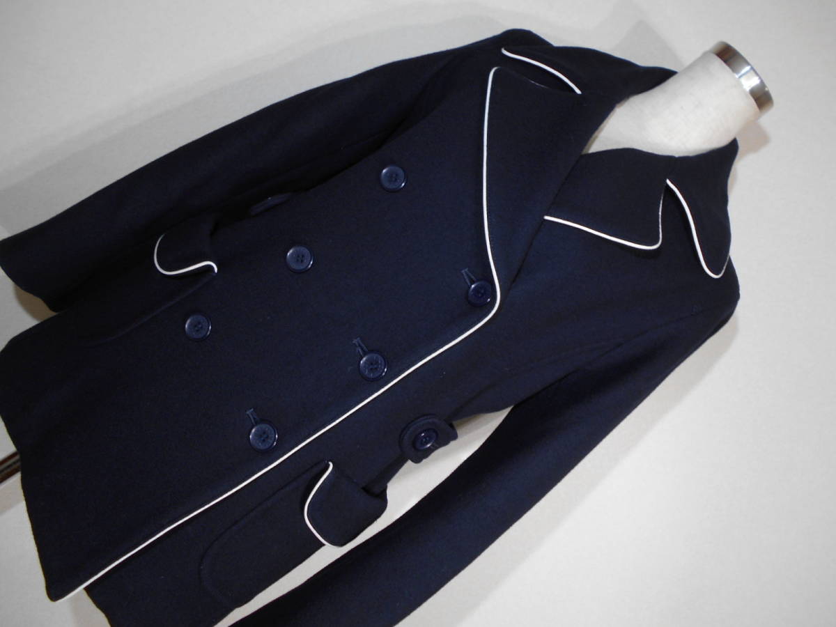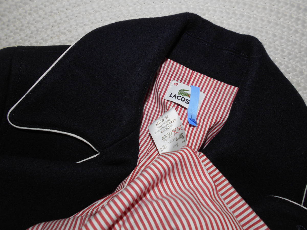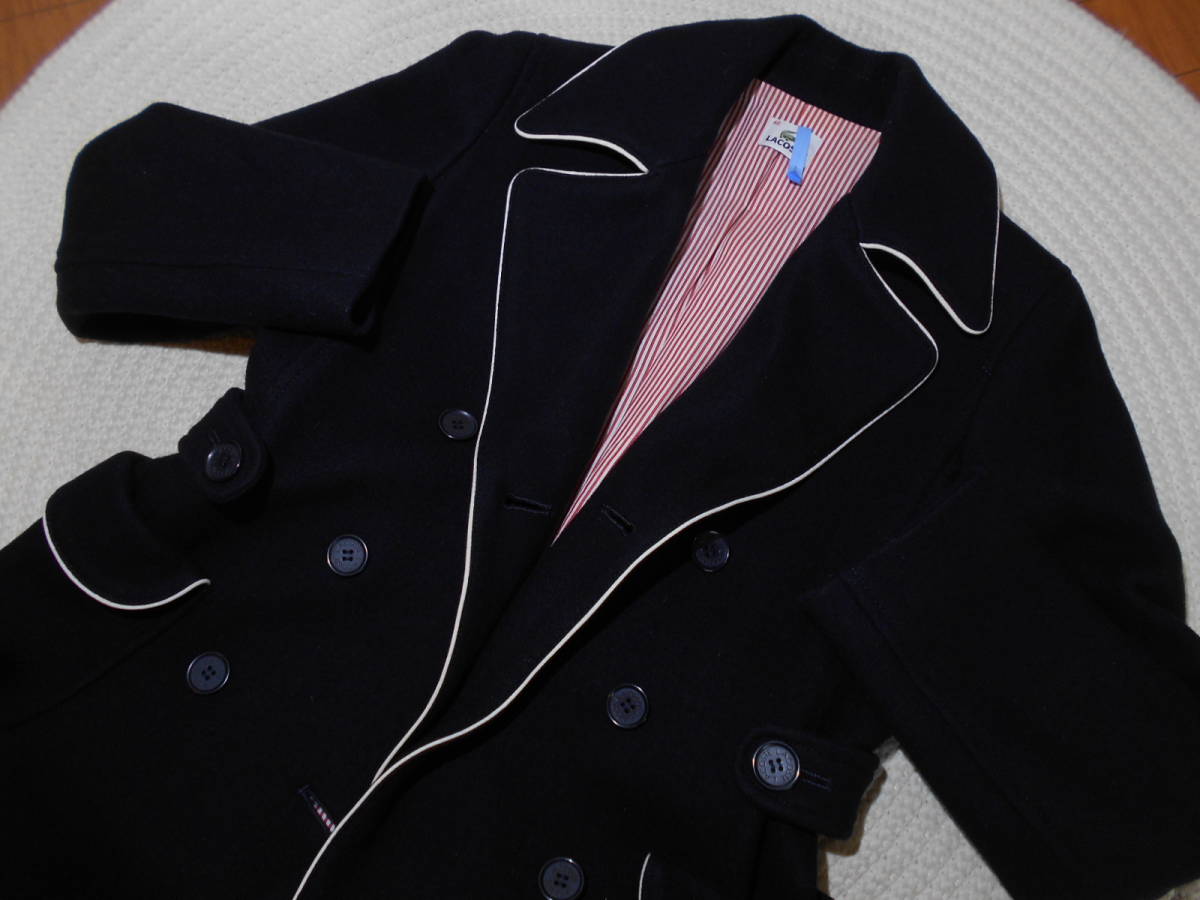 | K723美品!■ラコステ★黒ウール*白パイピング★ダブルコート■40 | |||||||||||