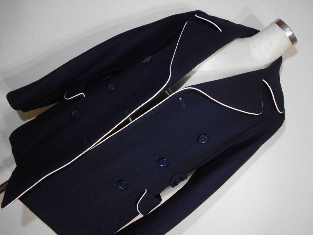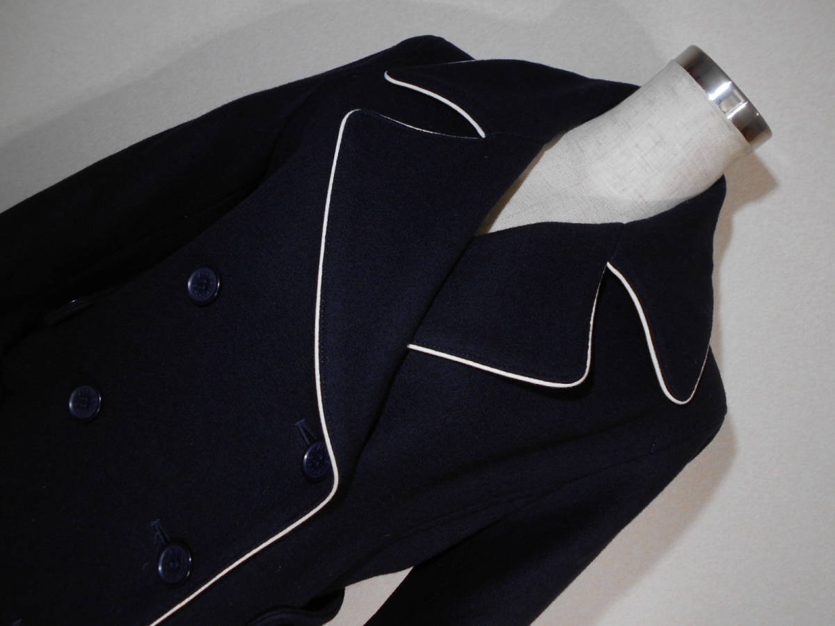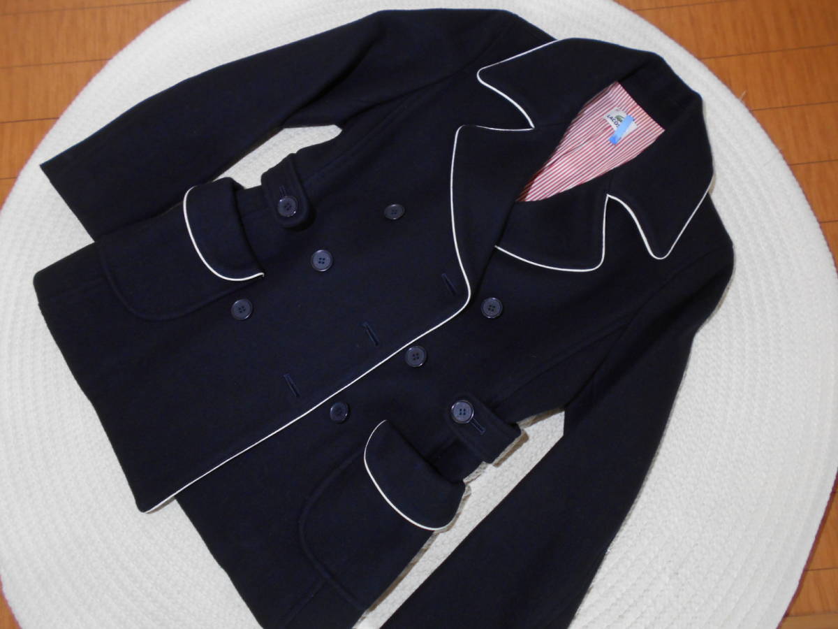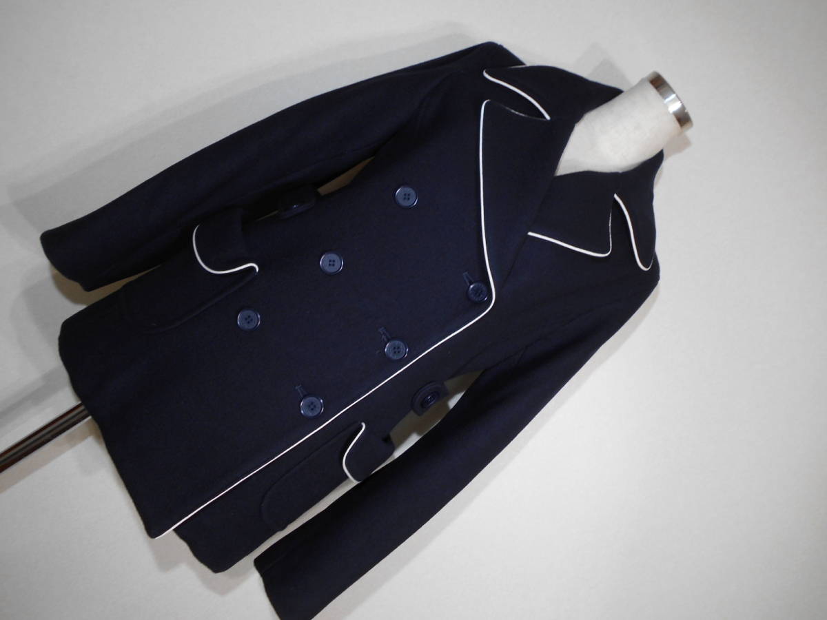| K723美品!■ラコステ★黒ウール*白パイピング★ダブルコート■40 | |||||||||||