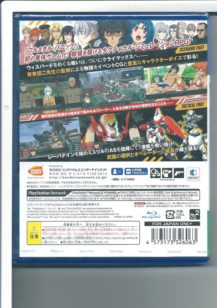 ●JANコード4573173326063 n2 ☆PS4 フルメタル・パニック! 戦うフー・デアーズ・ウィンズ ●商品の状態 新品未開封、包装されたままの状態ですが、ケースに若干のイタミ(へこみ)があります。 |