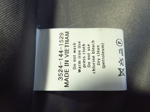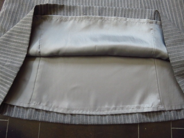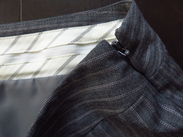 左柄でファスナー、ホック止め、総裏地、シャツ止めのゴム付き。