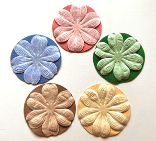 ●未使用、新品の人工スエード製・立体的な花びらコースター5色セットです