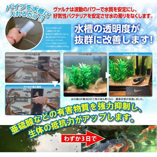 | 大事な生体やアクアリウム環境を守る為、いろんな薬剤等ありますが、池に入れるだけで自然由来の作用で水の透明度をアップさせることができるのが、今、話題のヴァルナです! | ||