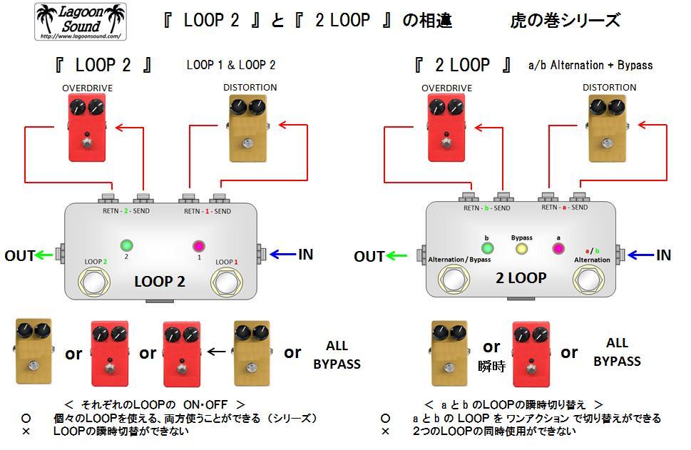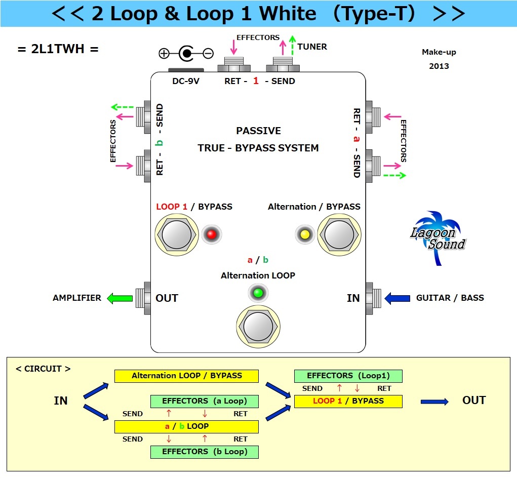 IN ⇒ { (a Loop / b Loop) / ALL True-Bypass } ⇒ ( Loop 1 / True-Bypass ) ⇒ OUT |