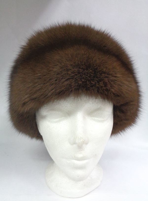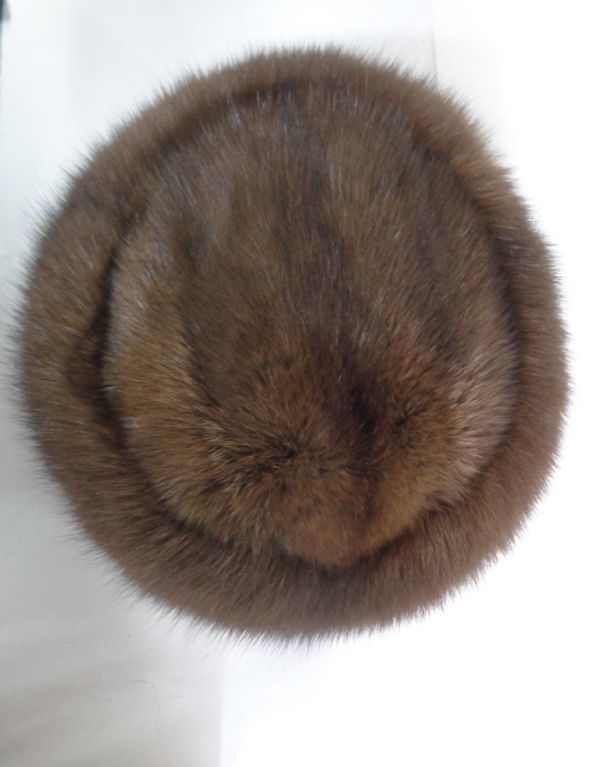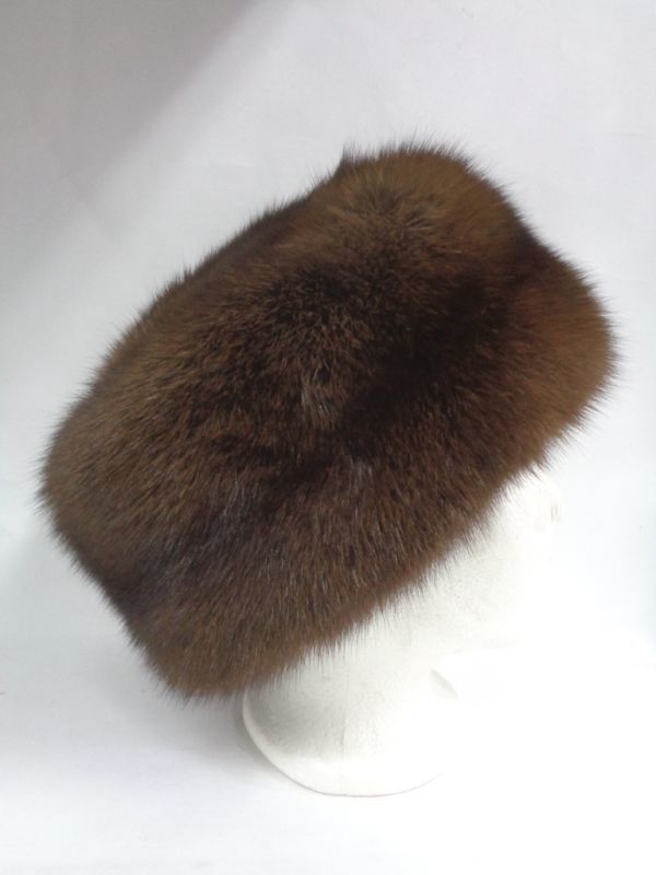 • エレガントなカナディアン・セーブル毛皮ハット。ミディアム・ブラウンの柔らかな毛並み。ピルボックス・スタイル。