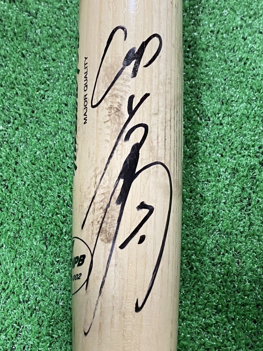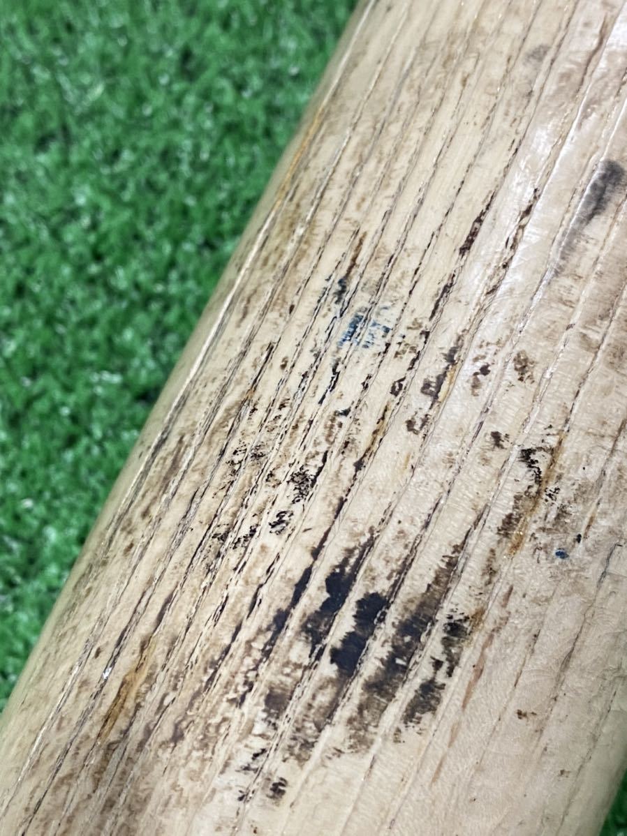 広島東洋カープ 7 堂林翔太'18シーズン公式戦 実使用 直筆サイン入りバット 打ち込まれて芯の木目に剥がれがあります。折れやヒビはありません。