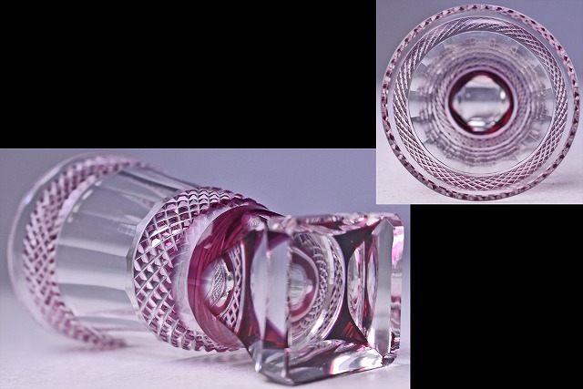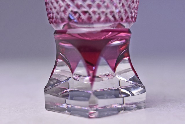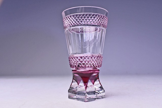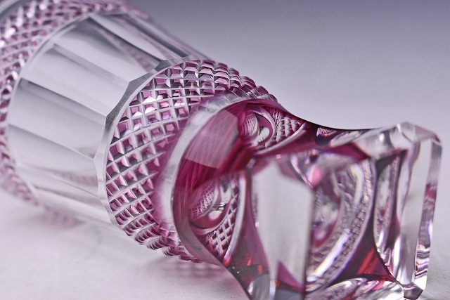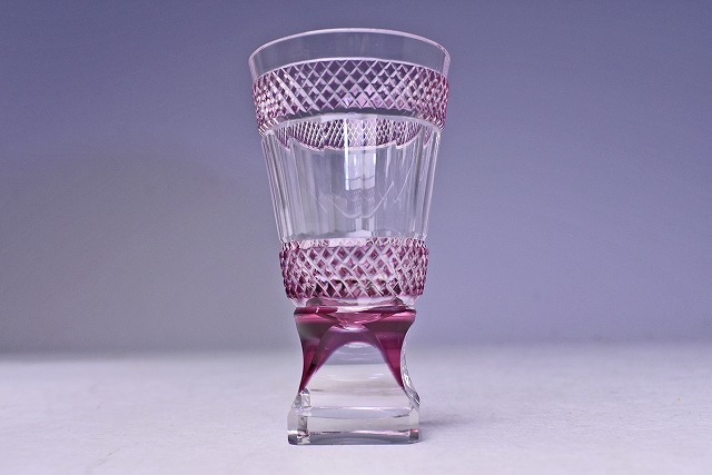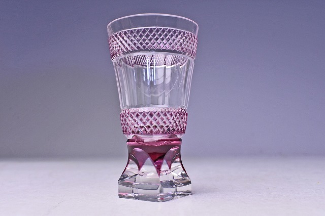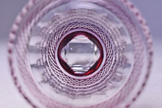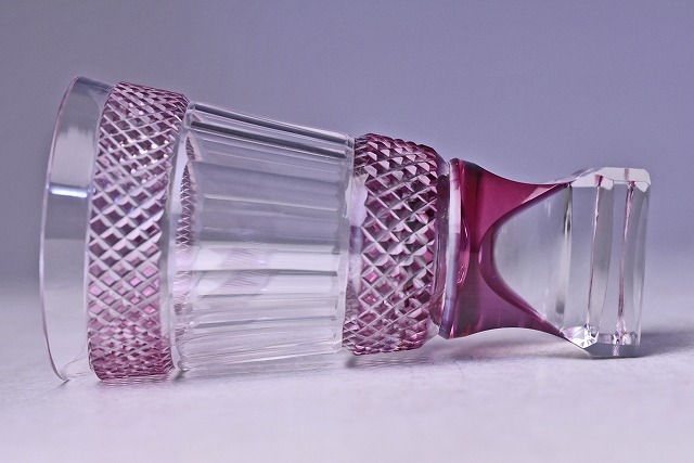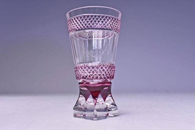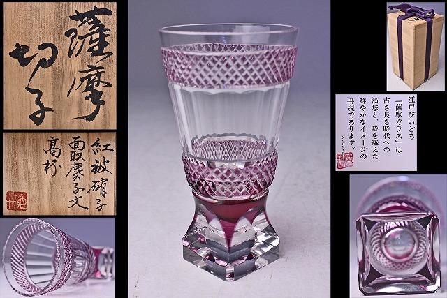 カメイガラス ★ 紅被硝子面取鹿の子文ぐい呑 ★ 共箱栞 ★ 江戸びいどろ 薩摩ガラス ★