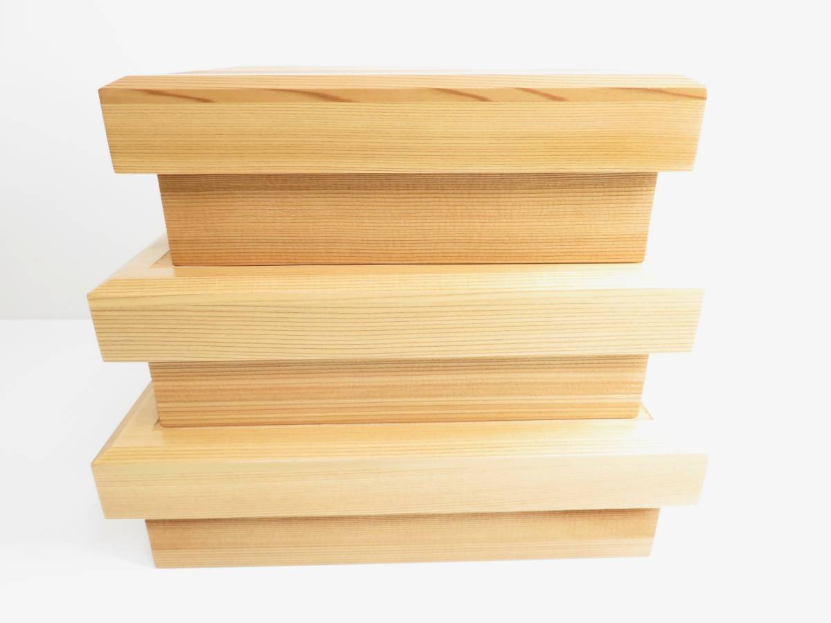 切溜 入子三段 蓋付 収納 重箱 木製 おしゃれ 3点セット 未使用品です。