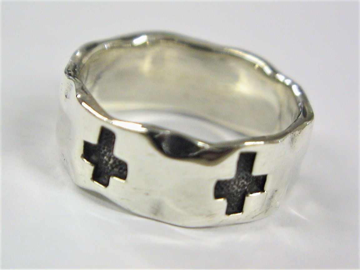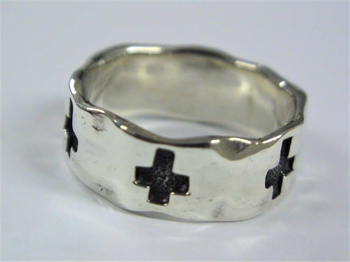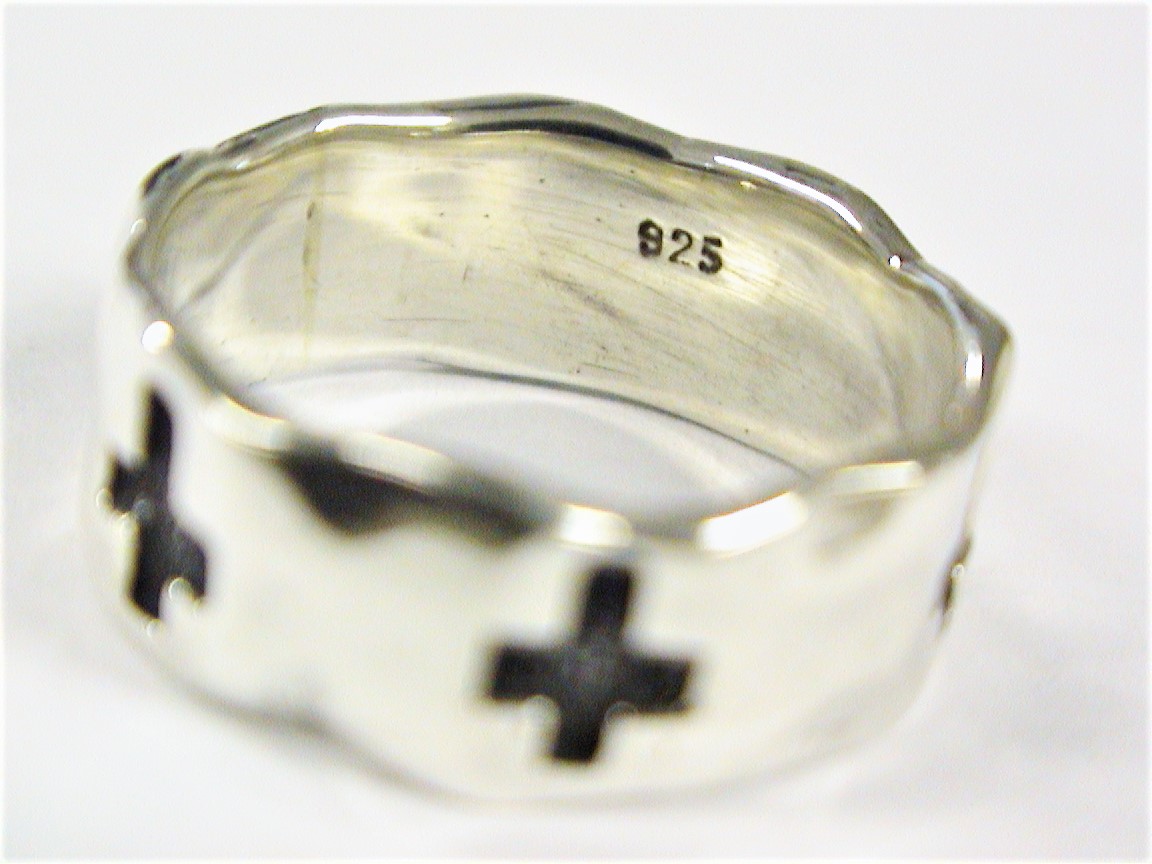 925シルバー製 平打ちデコボコクロスリング8号新品。