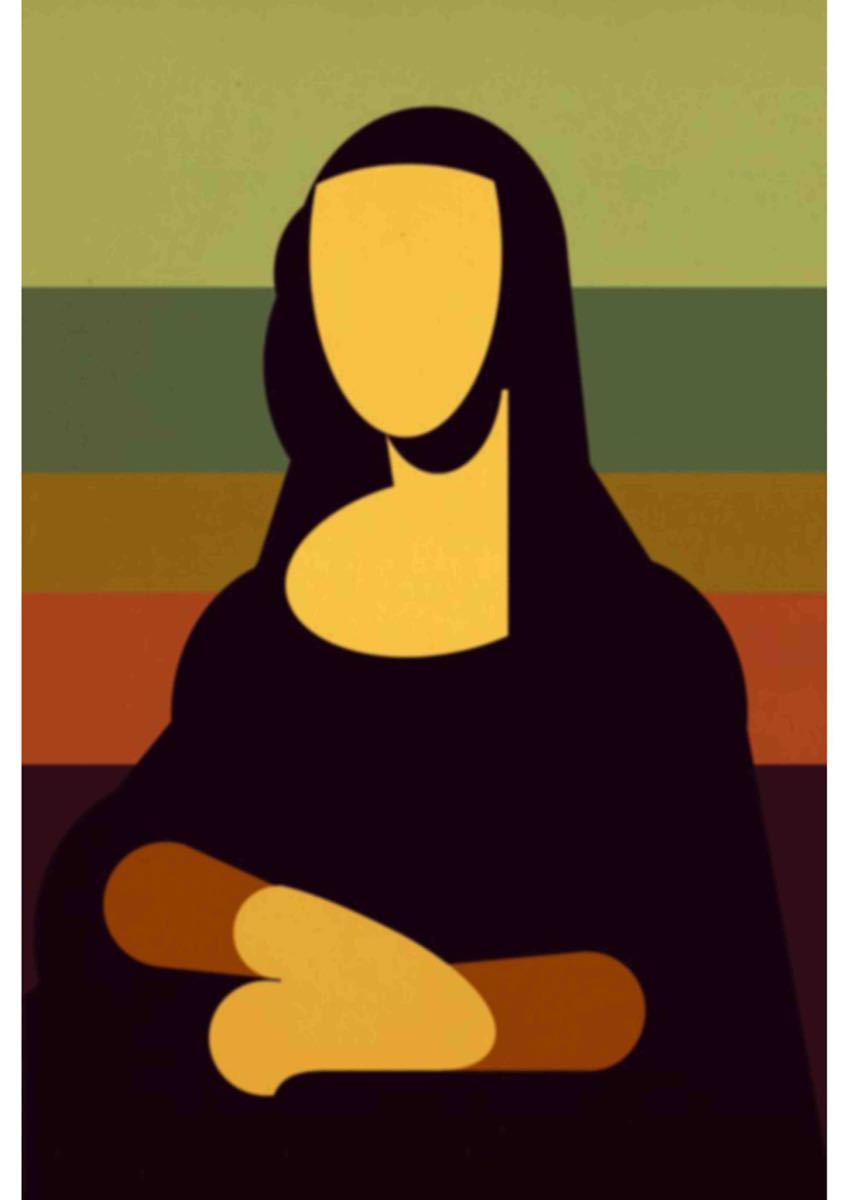 「世界でもっとも知られた、もっとも見られた、もっとも書かれた、もっとも歌われた、もっともパロディ作品が作られた美術作品」レオナルド・ダ・ヴィンチのモナ・リザ をカラフルにデフォルメ、抽象化したポップなイラストデザインです。