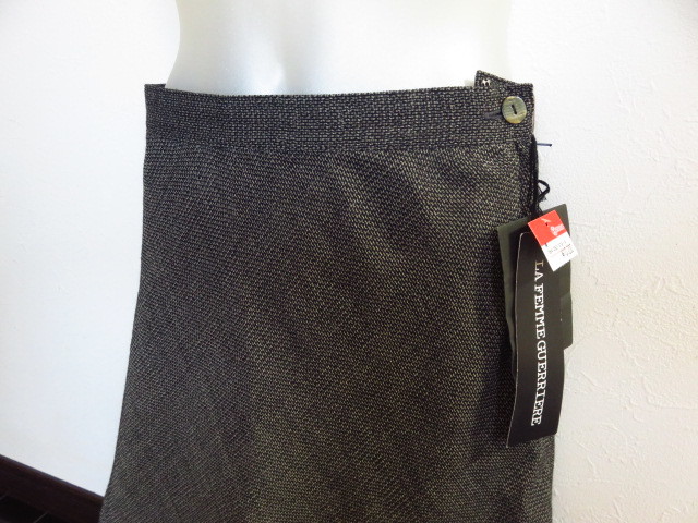【LAFEMME GUERRIERE】ラファムゲレールの高級ウールスカート、左側でファスナー、ボタン止め、総裏地。