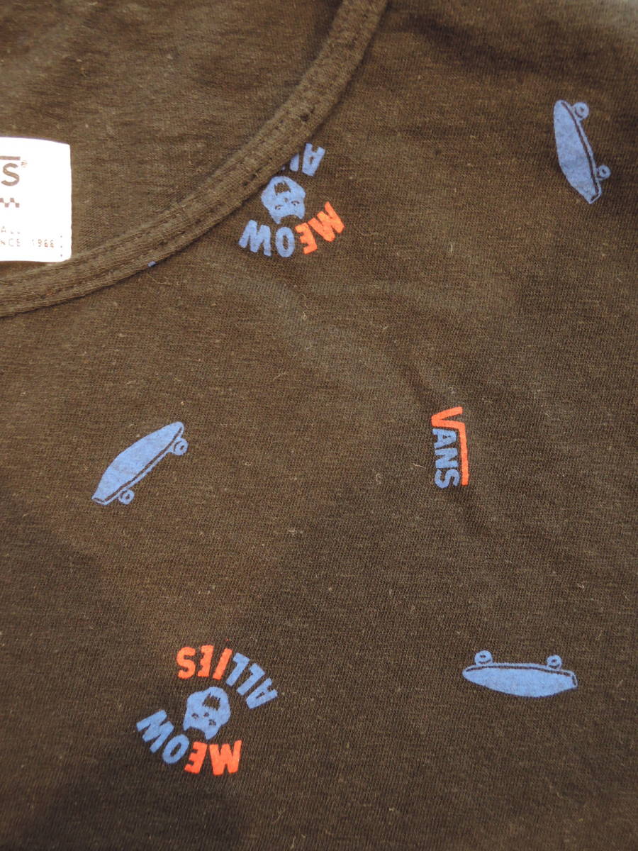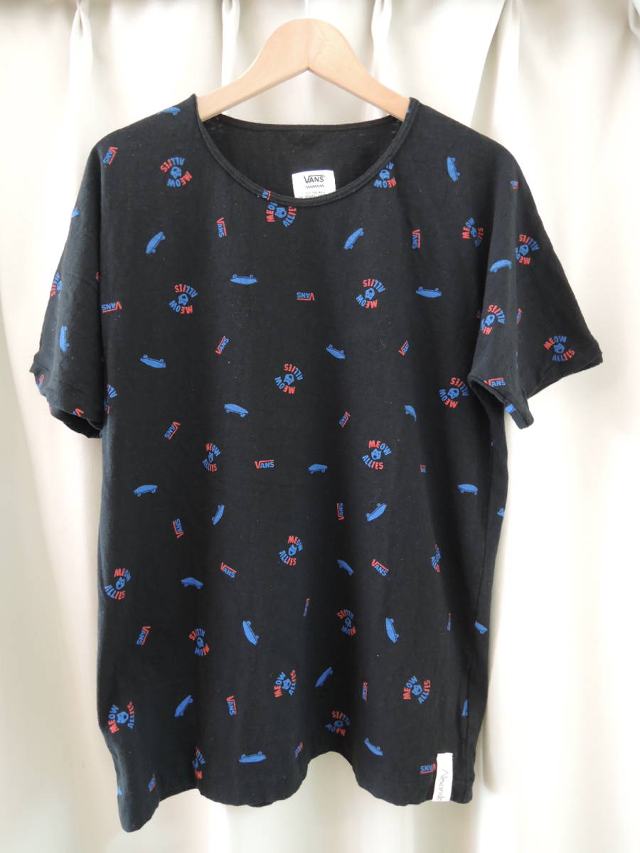 ALCらしいニャンコモチーフの架空のスケートチーム“MEOWALLIES"がvansとコラボした、総柄プリントのドルマンスリーブTです。 vansのロゴ、スケボー、“MEOWALLIES"のロゴが散りばめられています。