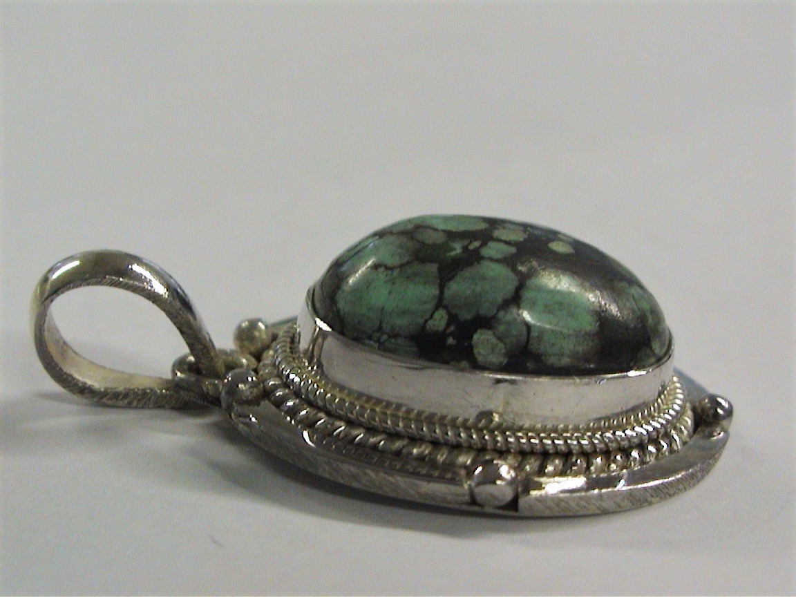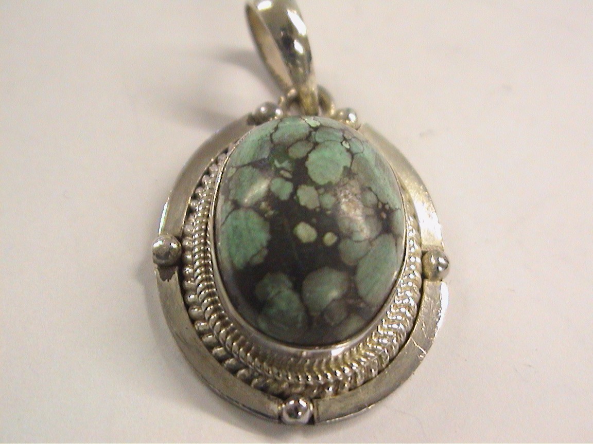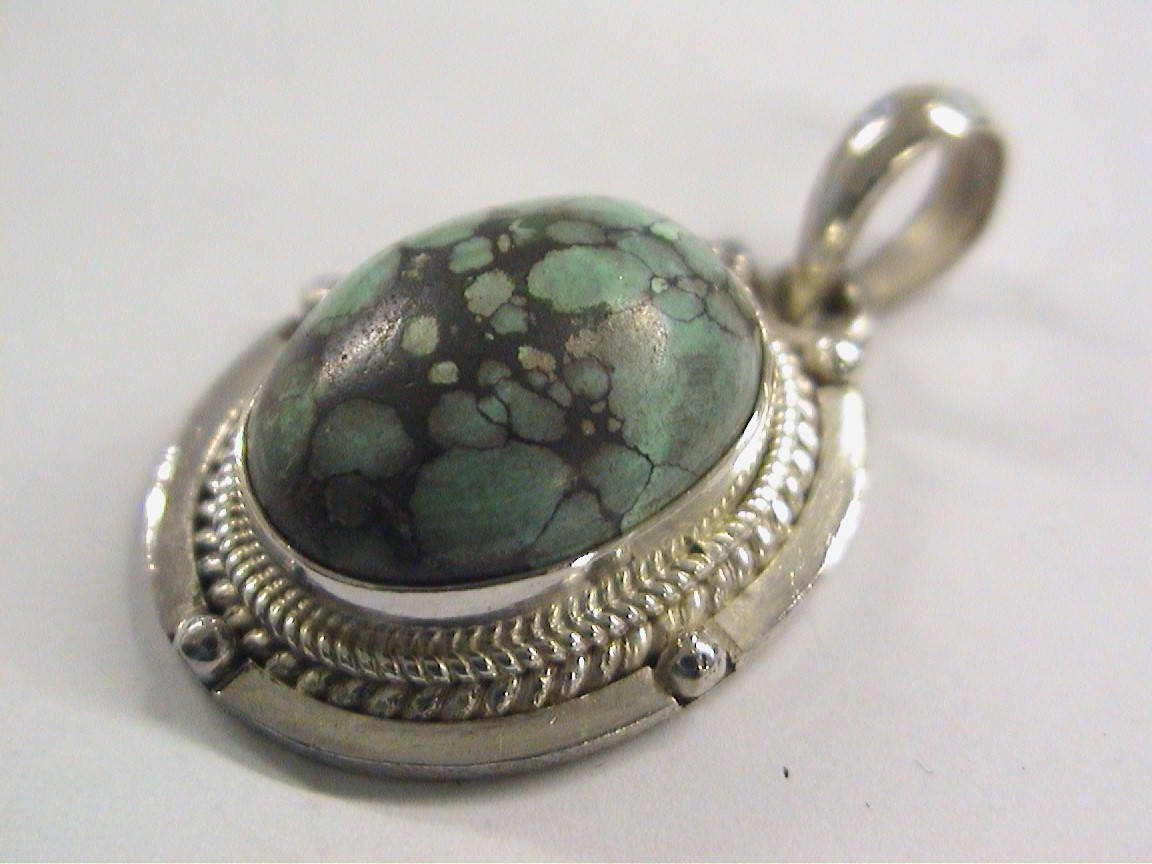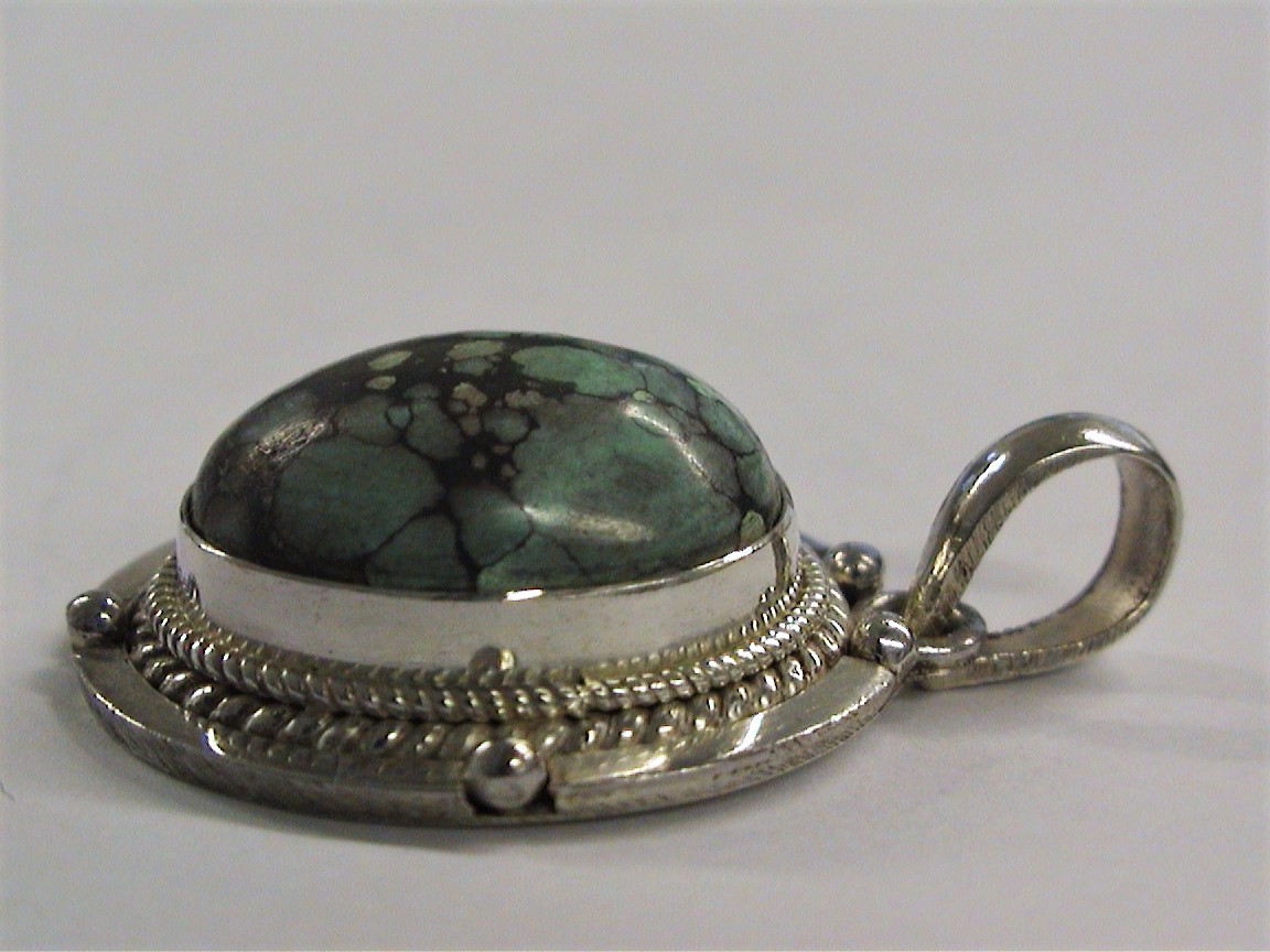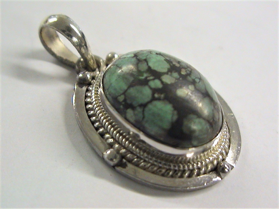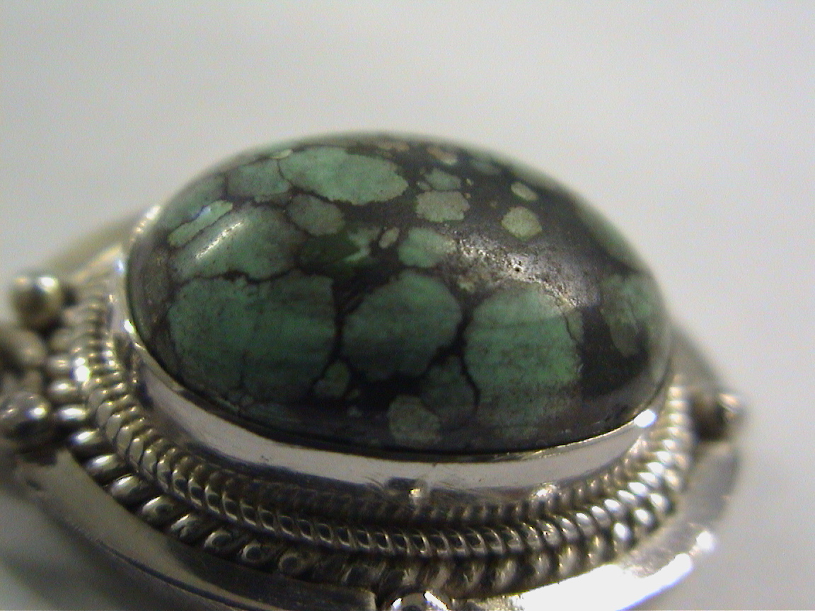 ターコイズの大きさは17.9mmx13.0mm、丸かんを含めた全長36.3mm。