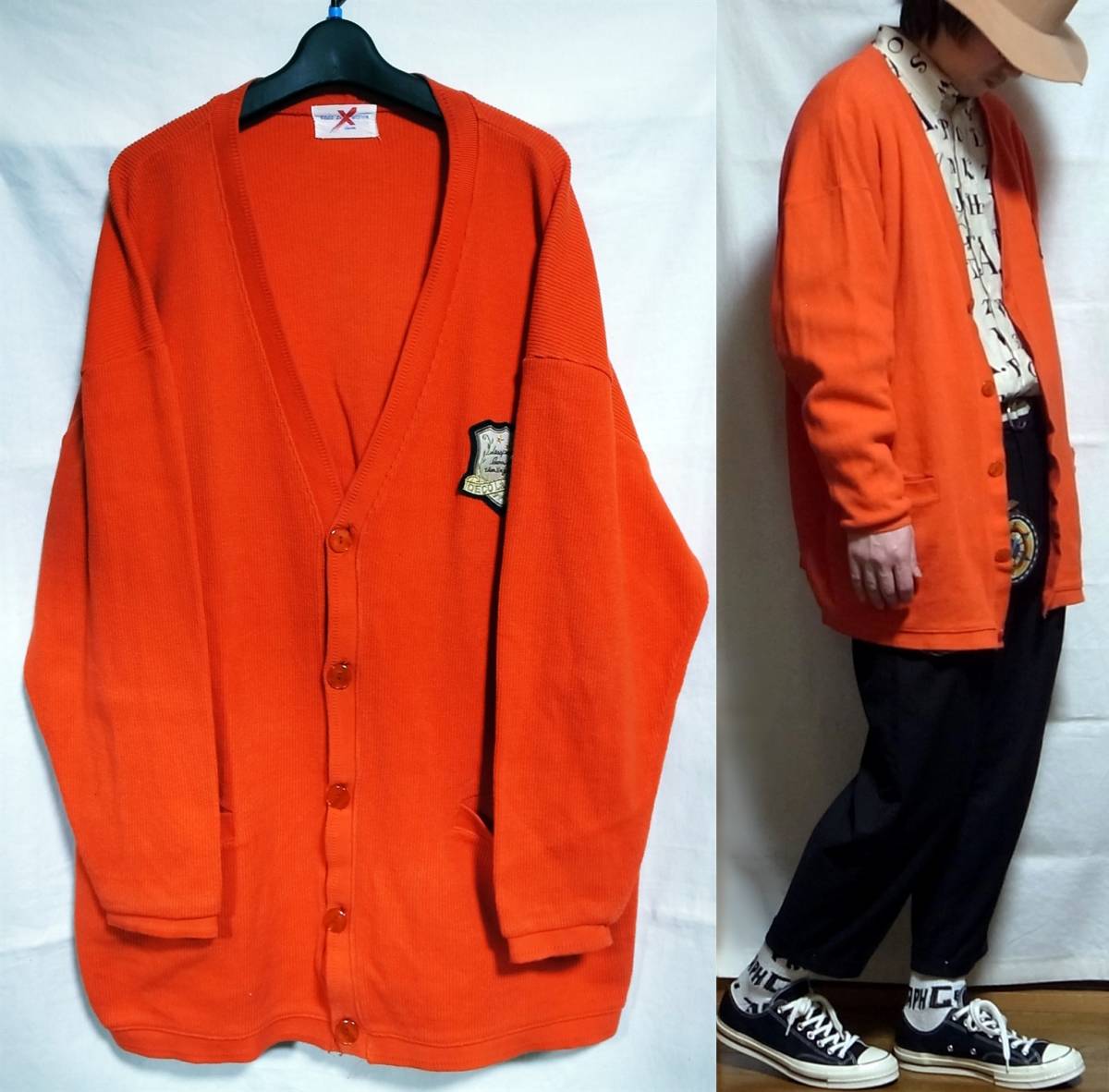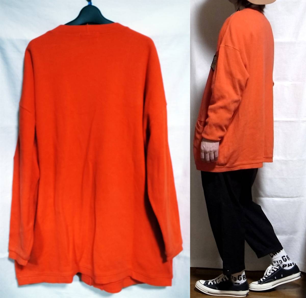 ご回覧ありがとうございます。お手数ではございますがトラブルの元になりますので、説明文は最後までお読み下さい。 着画がある場合のモデルは177×62位の男性です。 こちらはDeco la vision / デコラビジョンのビッグシルエットカーディガンになります。サイズはフリーです。 適度な厚さのコットン素材ですので1年中で使い勝手が良いです。 オレンジと赤がMIXされた朱色のような綺麗なカラーリングやドロップショルダーのビッグシルエットなどとっても素敵です。胸元のカレッジテイストのオリジナルワッペンも格好良いです。 女性が大きくロングカーディガンのように着られても絶対に可愛いと思いますので彼女との兼用やプレゼントとしても喜ばれるかと思います。 状態はused clothingで使用感はありますが大きなダメージや汚れは見受けられません。コーディネートに古着も合わす方ならまだまだ着て頂けます。ボタンホールにコットン製ならではのホールのゆるみのようなものが多少ございます。 あくまでも取扱い商品は古着となりますので神経質な方はご遠慮下さいませ。 サイズ フリー 実寸平置き(背中心着丈 77cm位、脇下身幅 67cm位、肩幅 68、袖丈 51㎝位) ※着画モデルは177×62位の男性です。 特殊なアイテムの素人採寸ですので多少の誤差はご了承の上ご参加下さい。 |