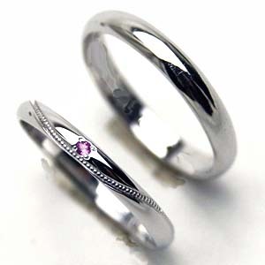 天然ピンクサファイヤシルバーペアリング(2本セット)刻印文字、送料無料/ピンクサファイヤ/結婚指輪/マリッジリング