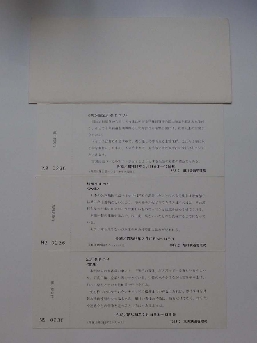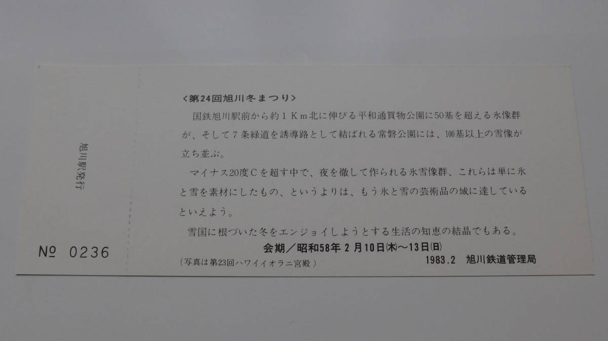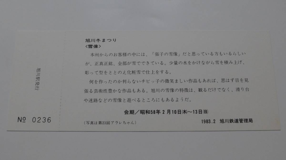 ★☆国鉄 旭川鉄道管理局 第24回旭川雪まつり記念入場券(見本) / 記念乗車券,記念切符,☆★