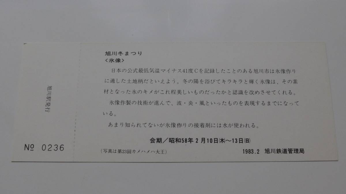 国鉄 旭川鉄道管理局 第24回旭川雪まつり記念入場券(見本) / 記念乗車券,記念切符,