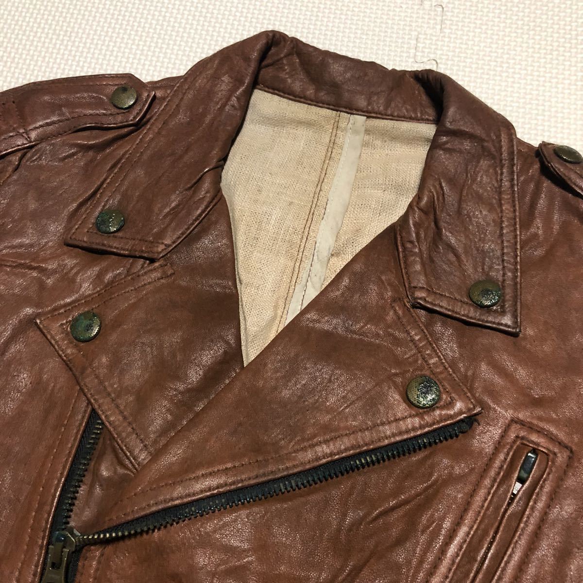 ABAHOUSE アバハウス ラムレザー ダブルライダース ジャケット 2 茶
