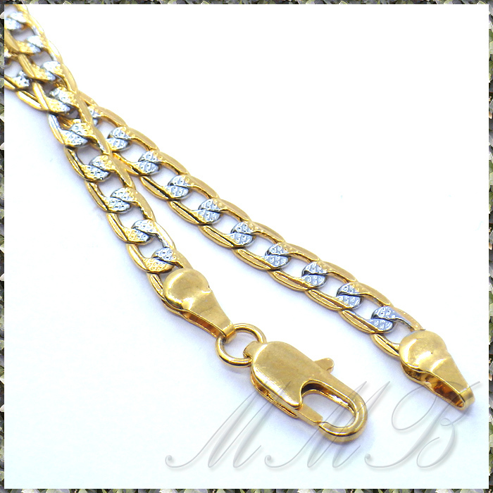 [BRACELET] Yellow & White Gold Filled センター ホワイトゴールド デザイン 喜平チェーン ブレスレット 4x255mm (5.8g) 【送料無料】