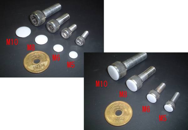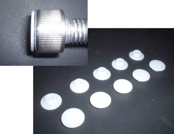 ボルトキャップ 10個で1セット M6用 ※5mmの六角レンチ穴用です。 材質:ポリアセタール(POM) 色:白 頭形状:平タイプ 樹脂製ですので高温になる部分には使用しないで下さい。 写真のボルトと5円は出品物ではありません。 |