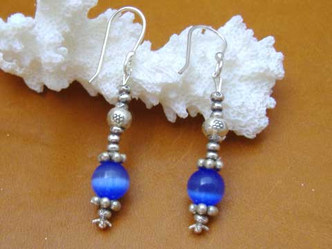 ◆カレン族シルバー&キャッツアイのロングピアス46◆青 <検索>虎目石・Tiger's Eye・タイガーアイ・猫目石・ラピスラズリ |