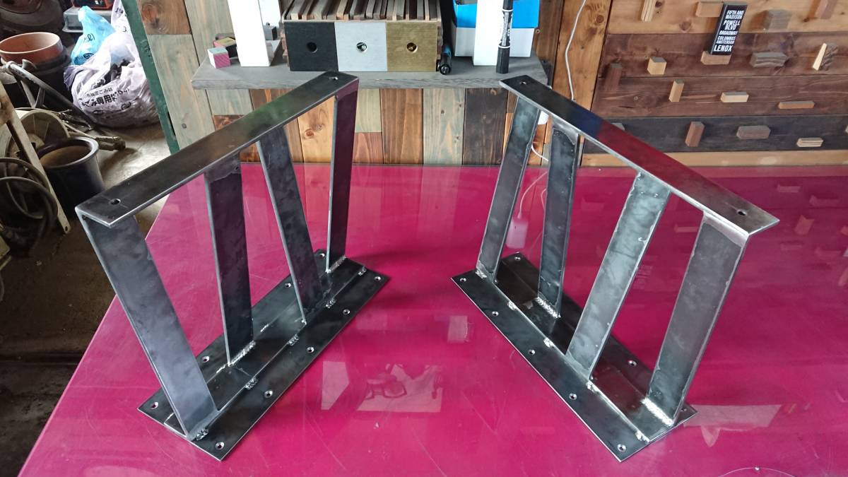 | ハンドメイドの鉄脚2脚1組での出品です。6mm × 50mmのフラットバーを使用しております。デザインもスタイリッシュでカッコイイです。 | |||||||||||