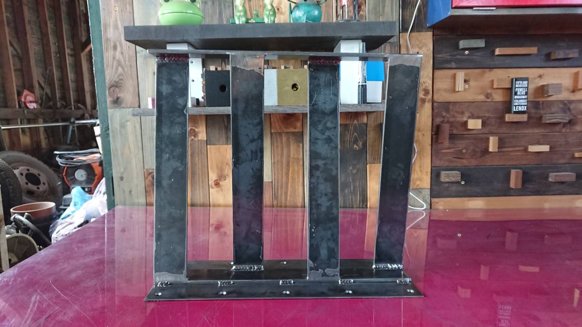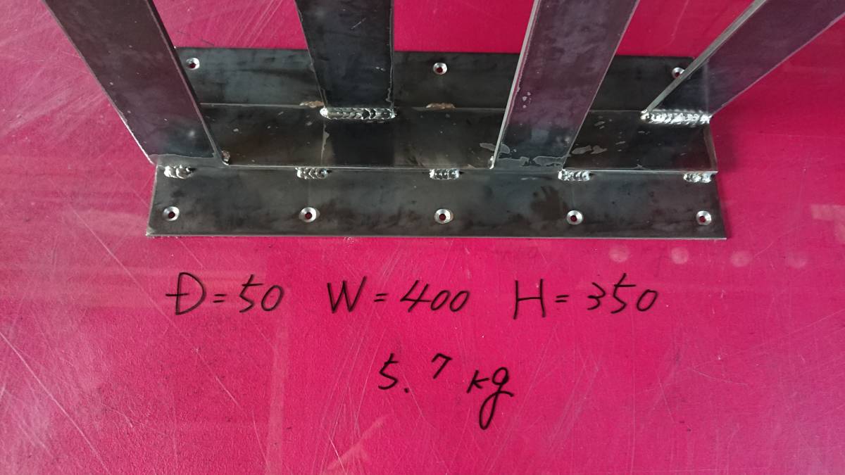 | フレーム部:6mm × 50mm フラットバー(スチール) 天板受け:2.3mm 鉄板 | |||||||||||