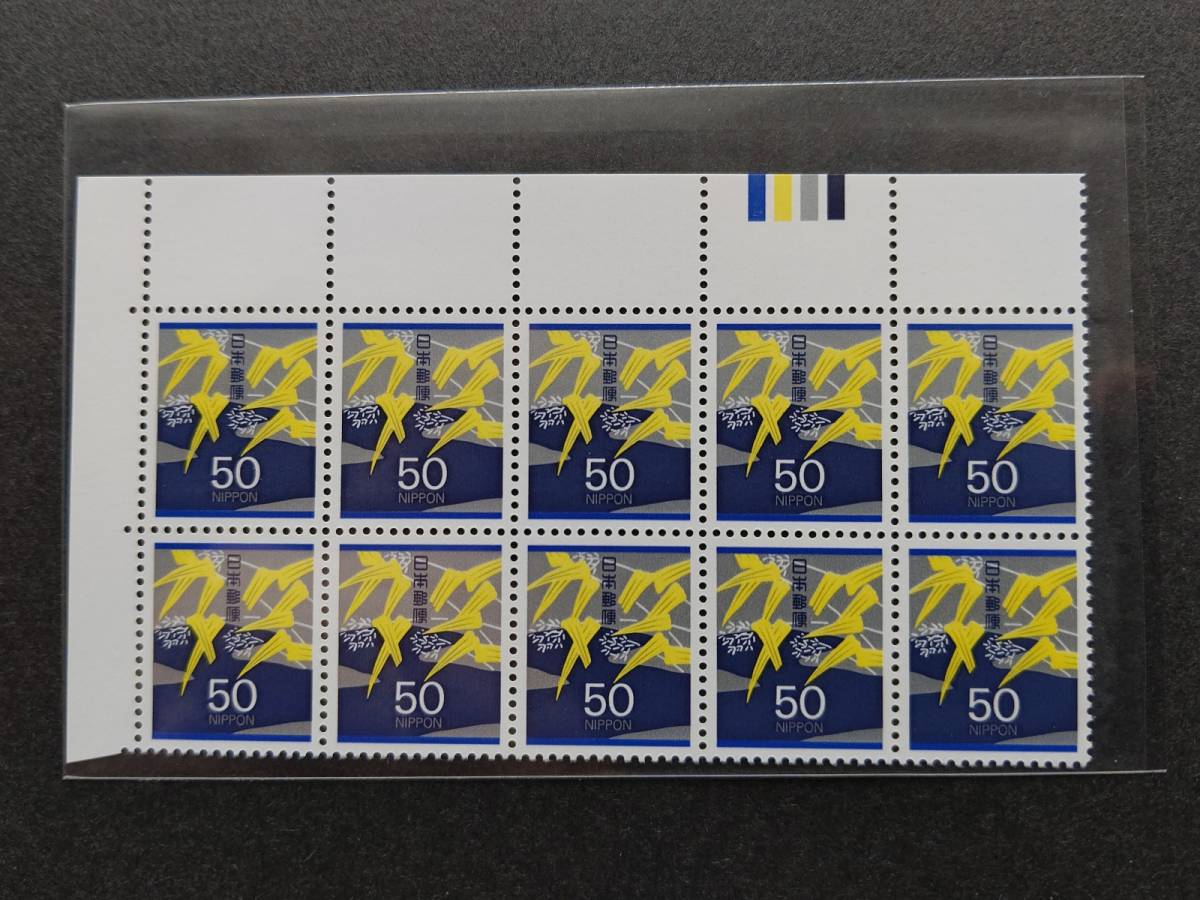 ◆◎◆《銘版・CM付10枚ブロック》 50円・アシ・CM上・とじ穴無し・10枚ブロック 《カタログ価》3500円