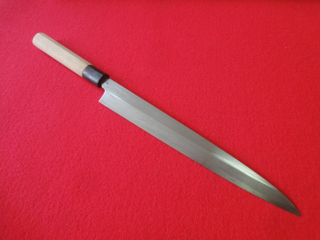 【築地正本】刺身包丁 ※青鋼 刃渡23.5㎝ 全長38.3㎝ 峰厚4㎜ 片刃 ※中古品 ※全国一律送料1100円