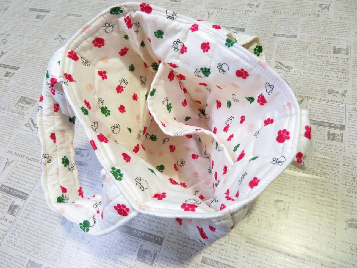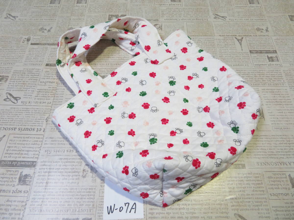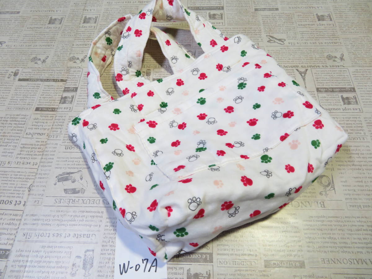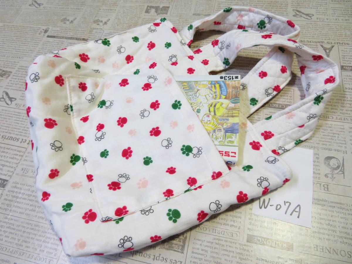 即決(W07-A)ハンドメイド♪リバーシブル♪ミニ手提げトートバッグ♪足あと肉球柄あしあと:赤色♪小さいサイズネコ犬ペットお散歩にも♪