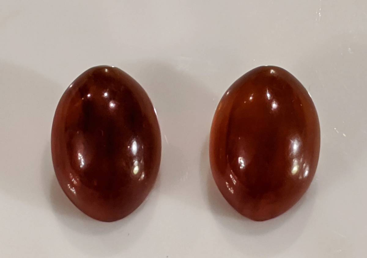 こちらは、オーバル(楕円)にアンバー(琥珀)色マーブルがベークライトの定番ともいえる人気の色合いで、日本人の肌色にもよく映えます