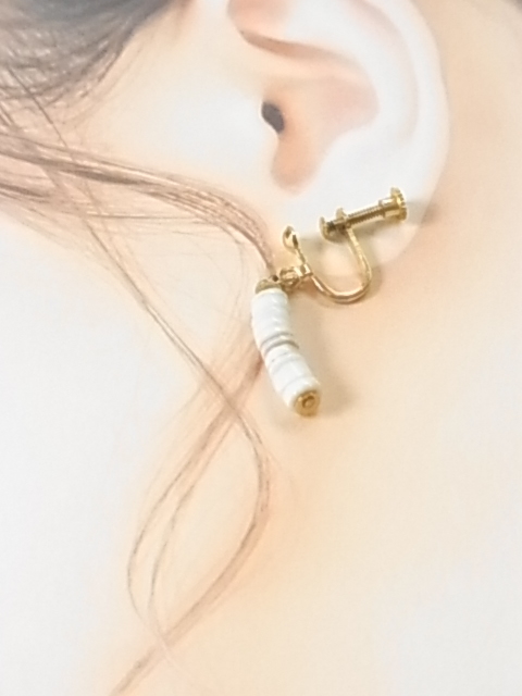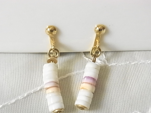シェル? 品質不明 連なる小さな輪 ゴールドカラーとの相性が素敵 揺れるデザインのイヤリング◆