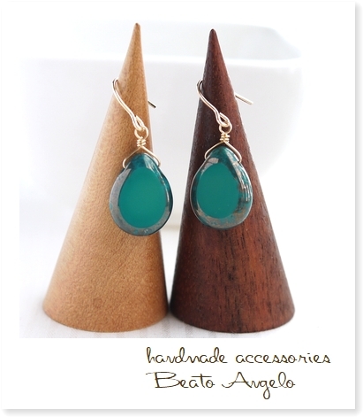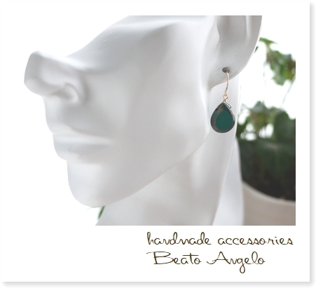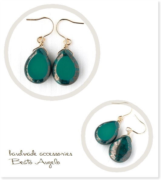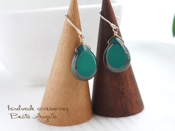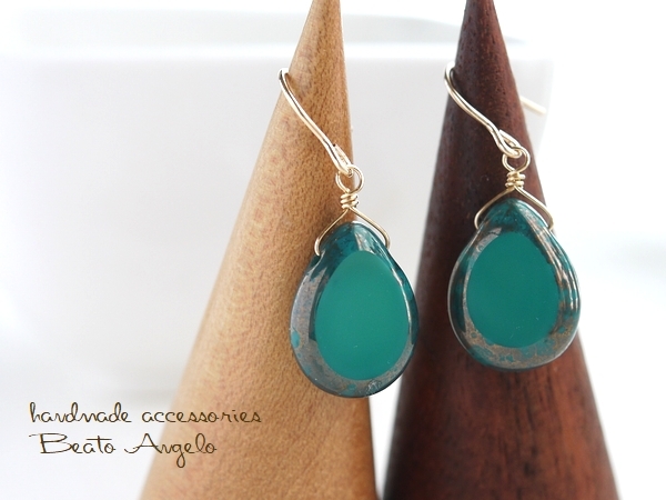 ◆+angelo+K14GF チェコ ウィンドウビーズ ドロップのピアス(p-004)ペルシアンターコイズピカソ 一粒 シンプル ブルーグリーン