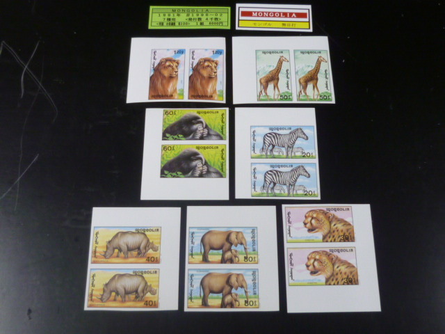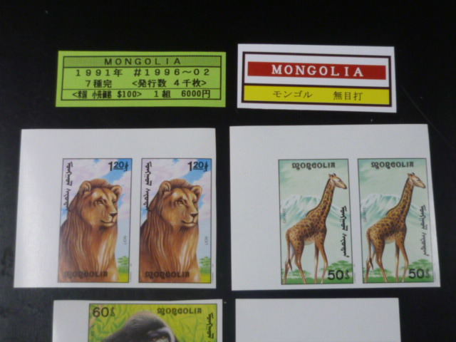 20 S モンゴル切手 1991年 B 無目打 SC#1996-2002 動物 ライオン・他 7種完 未使用NH・VF