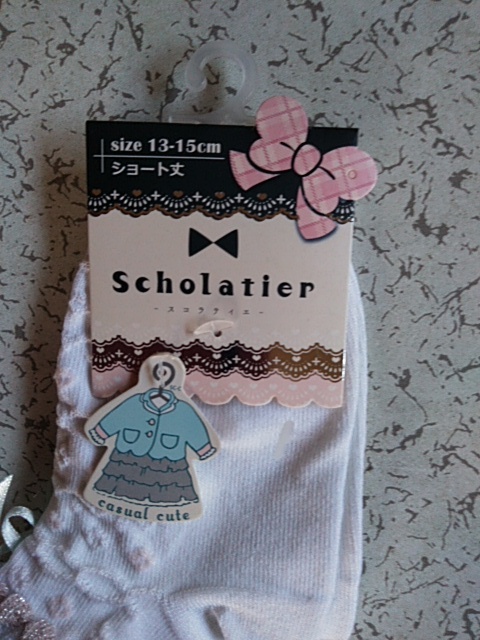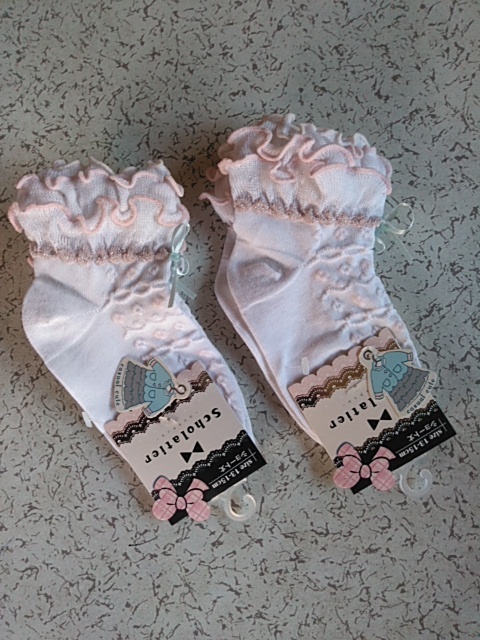 Scholatier(スコラティエ)白ショート丈 13~15cm 2足 (同・ピンク&白模様)