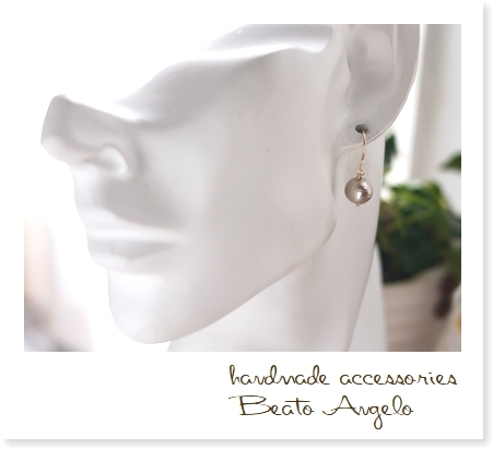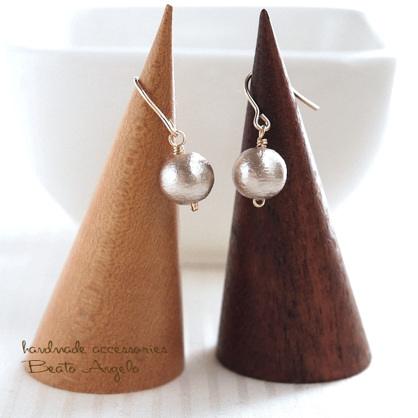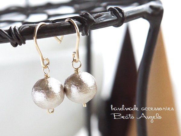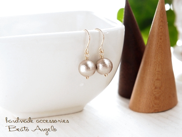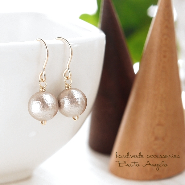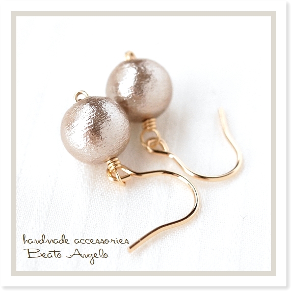 ◇◆+angelo+K14GF コットンパールの一粒ピアス(p-342)ライトブロンズ G 8mm シンプル 大人