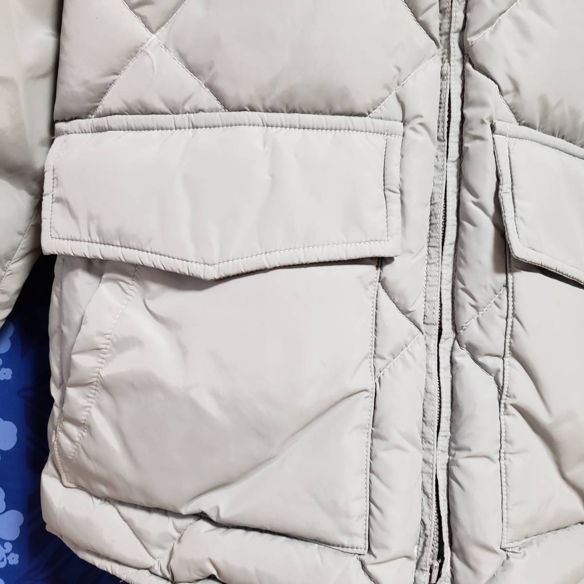綺麗なグレーで、襟のボアの部分はとても温かく、軽量で上品なデザインです。