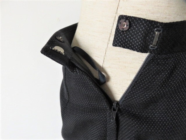 柔らかなソフト素材、左側でファスナー、ホック止め、総裏地、バックセンタースリット。