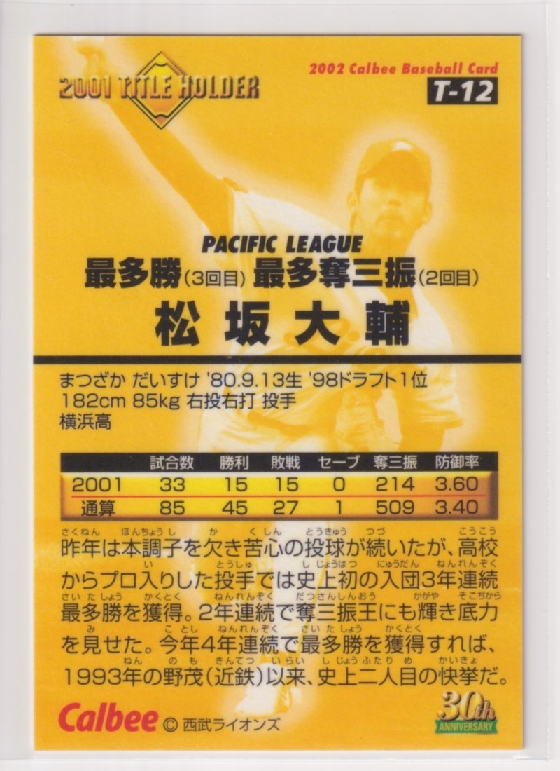 2002プロ野球チップス第1弾 T-12 松坂 大輔(西武)