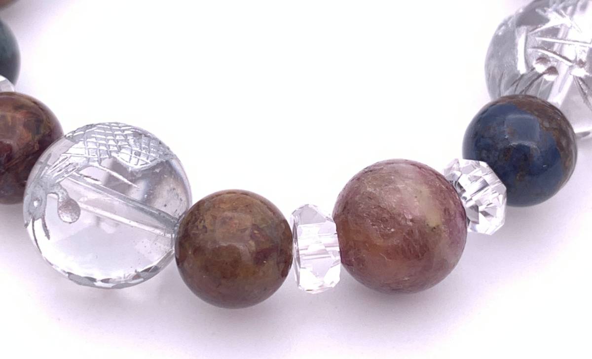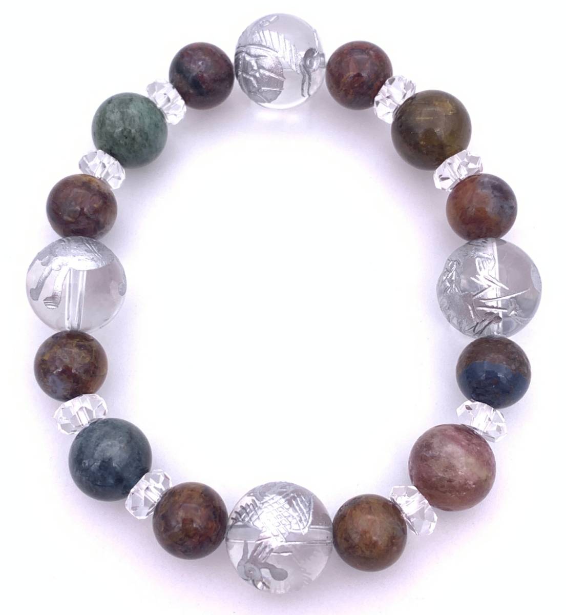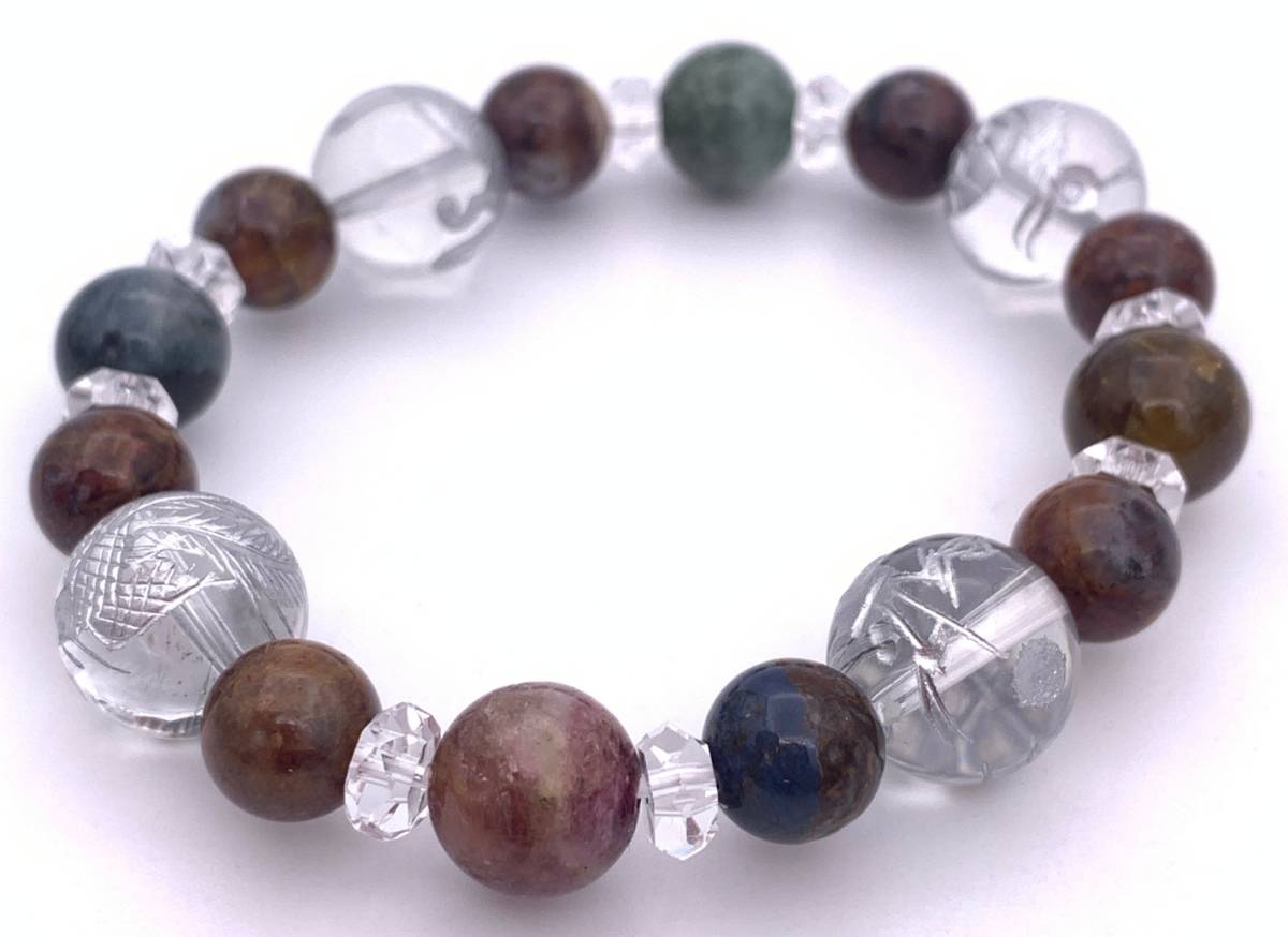 風水四神!天然石銀彫り水晶&ピーターサイト&トルマリンのブレスレット