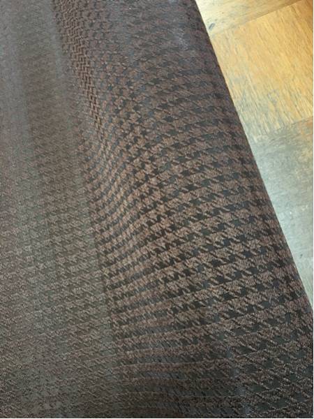 日本製のレース刺繍入りナイロンチュール生地、刺繍幅85cm×1m、お色は濃茶になります。