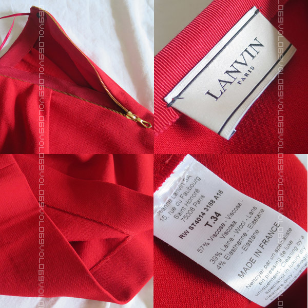 ランバンLANVIN 2016AW ツイル クレープ ウール ブレンド サイドジップ アシンメトリー タック ドレープ ニー スカート34レッド