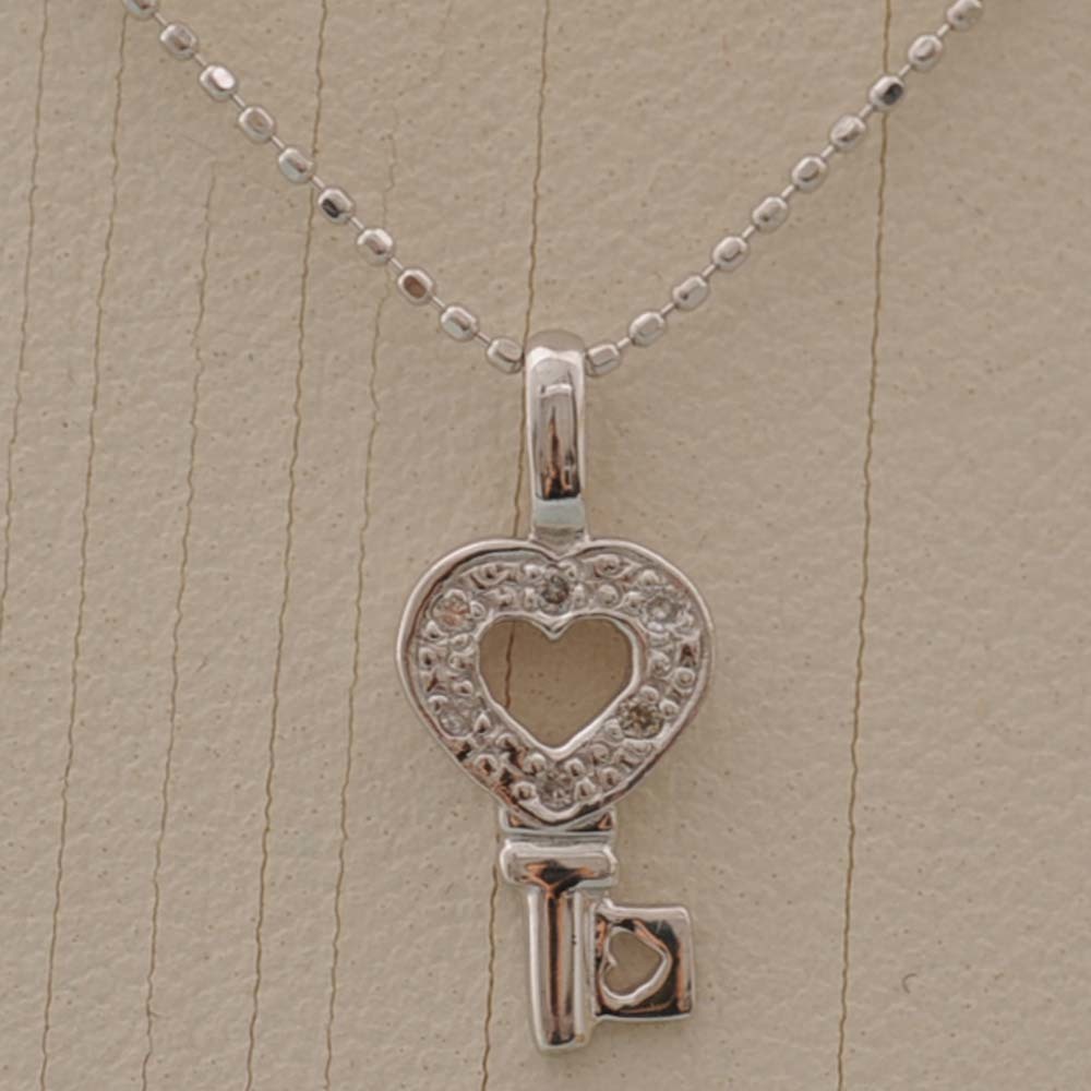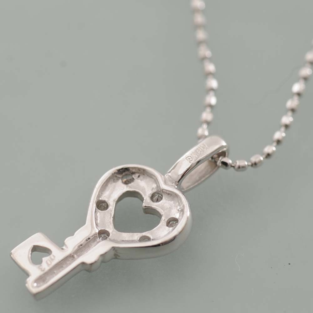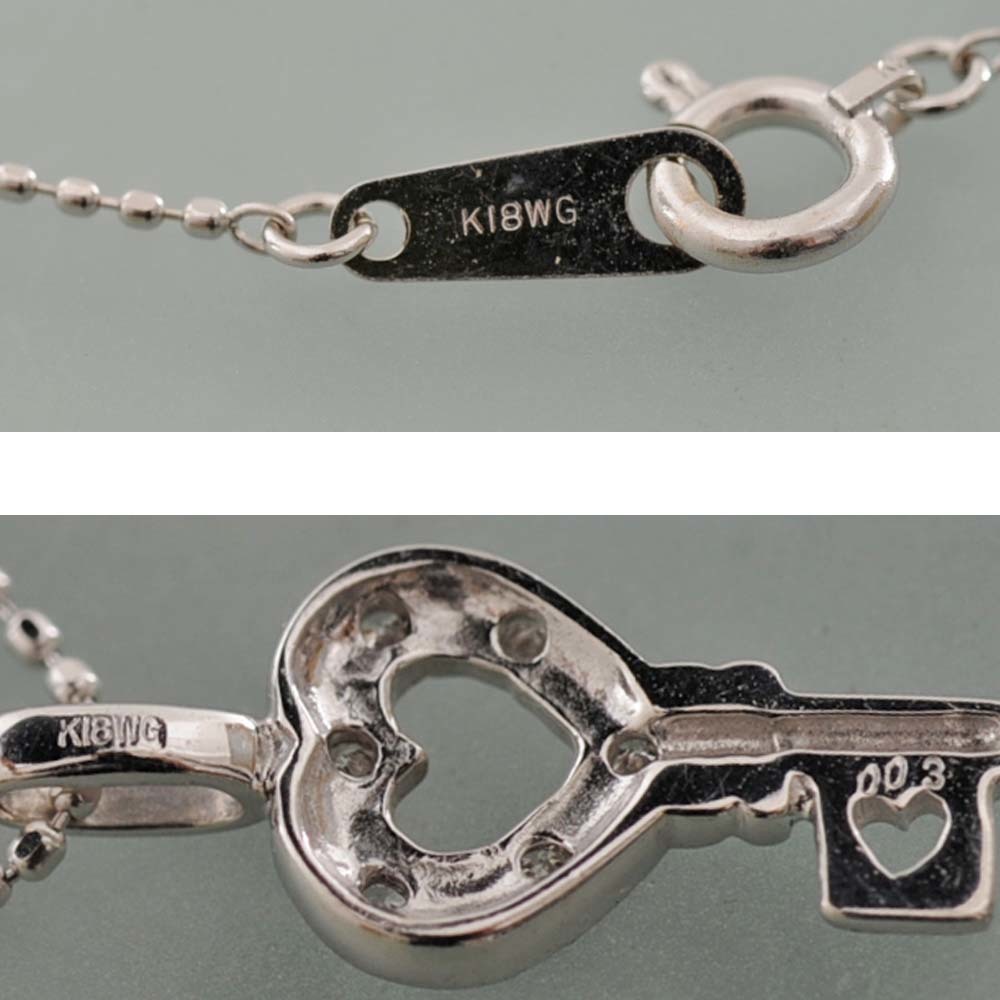 ● 【C46】k18WG ホワイトゴールド メレダイヤ ハート・鍵(キー)デザイン ペンダントネックレス 中古品