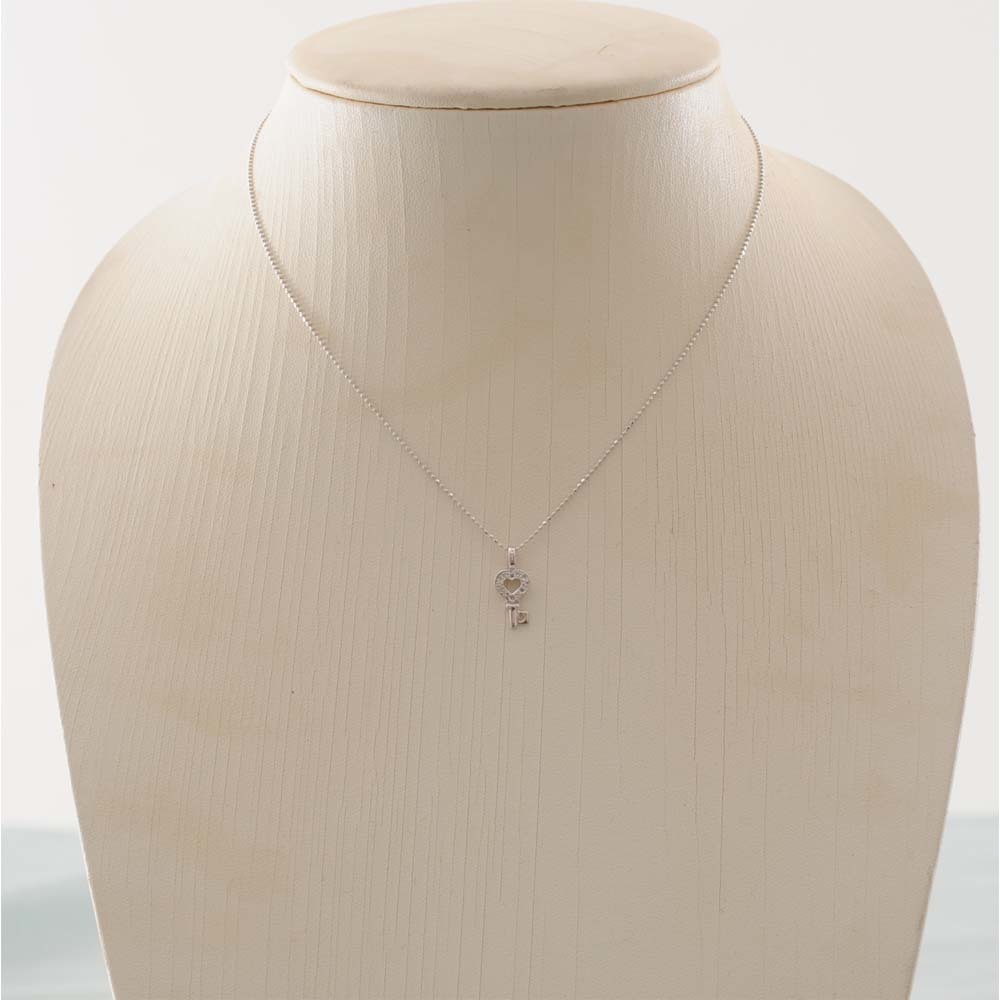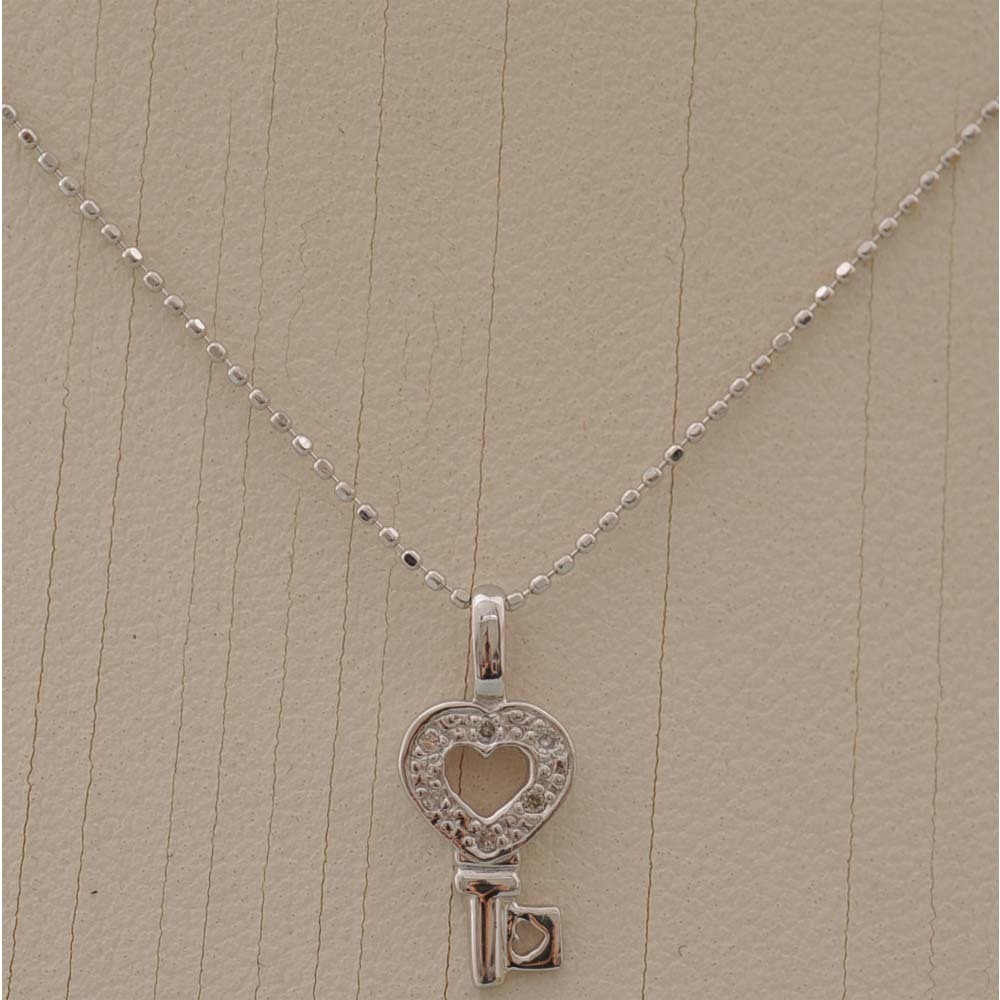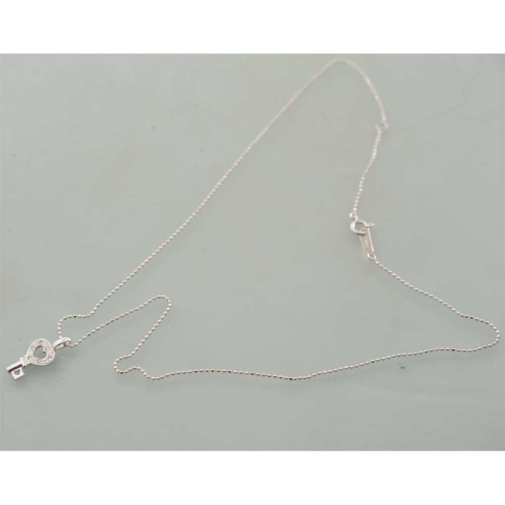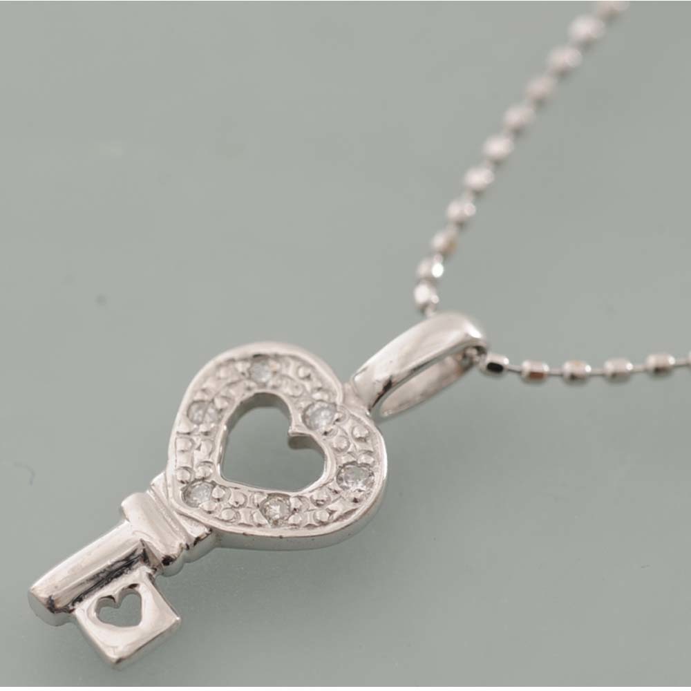 ● 【C46】k18WG ホワイトゴールド メレダイヤ ハート・鍵(キー)デザイン ペンダントネックレス 中古品