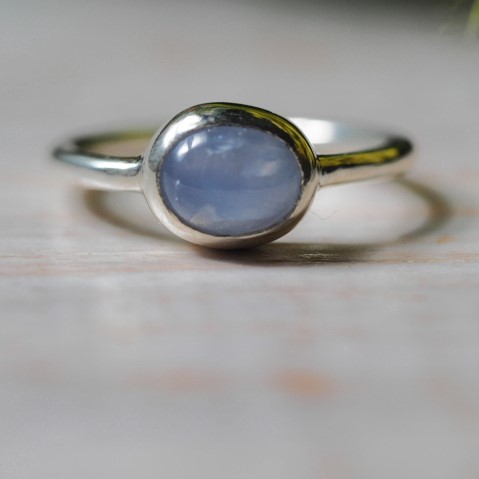 淡いブルーにグレイとパープルを1滴入れたような魅惑的な色のサファイア原石です。
